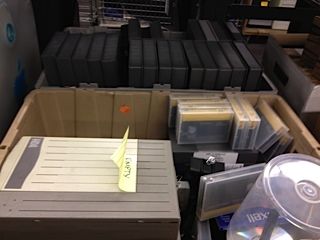 2 BINS OF HARDDRIVES & STORAGE TAPES