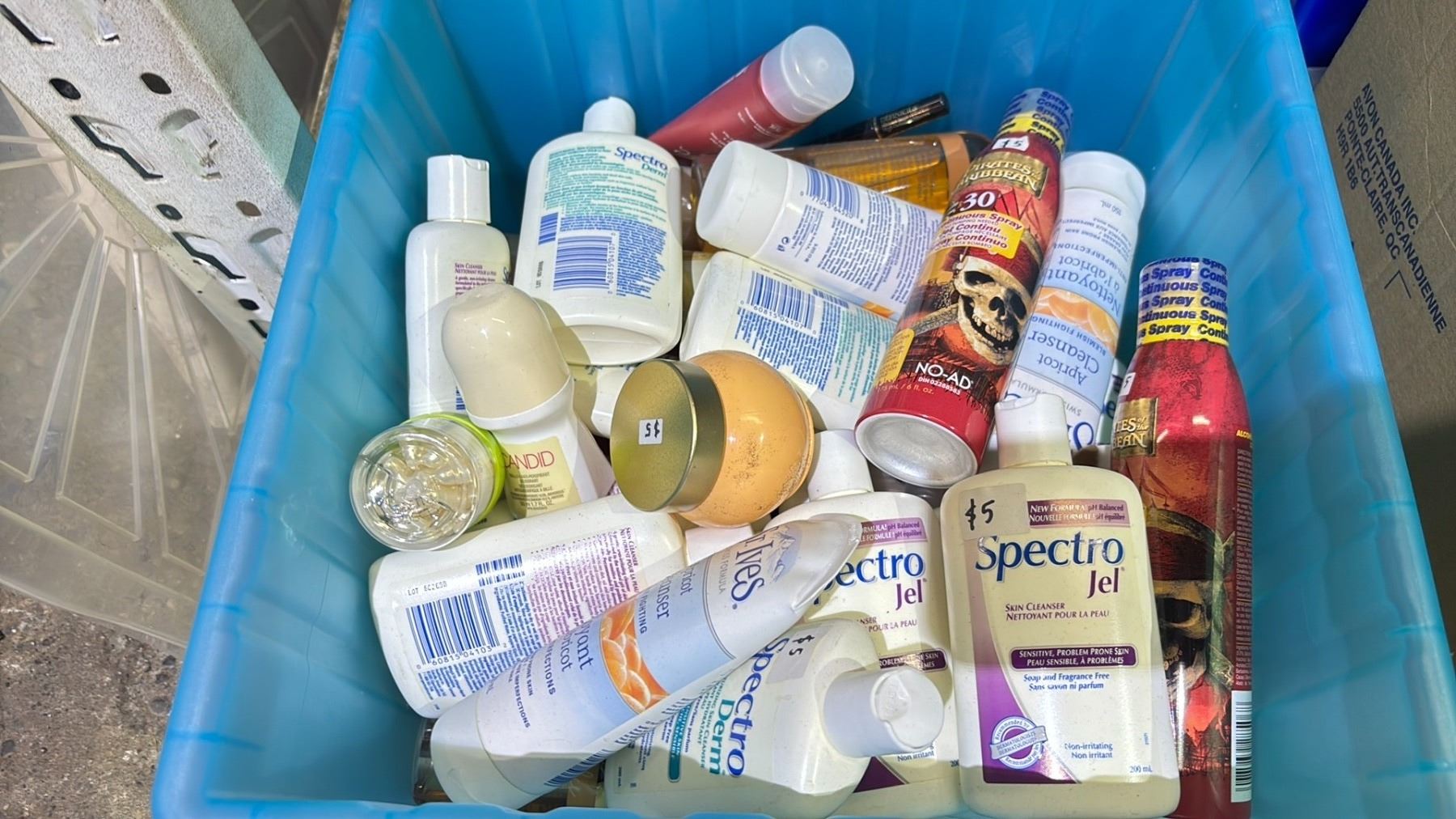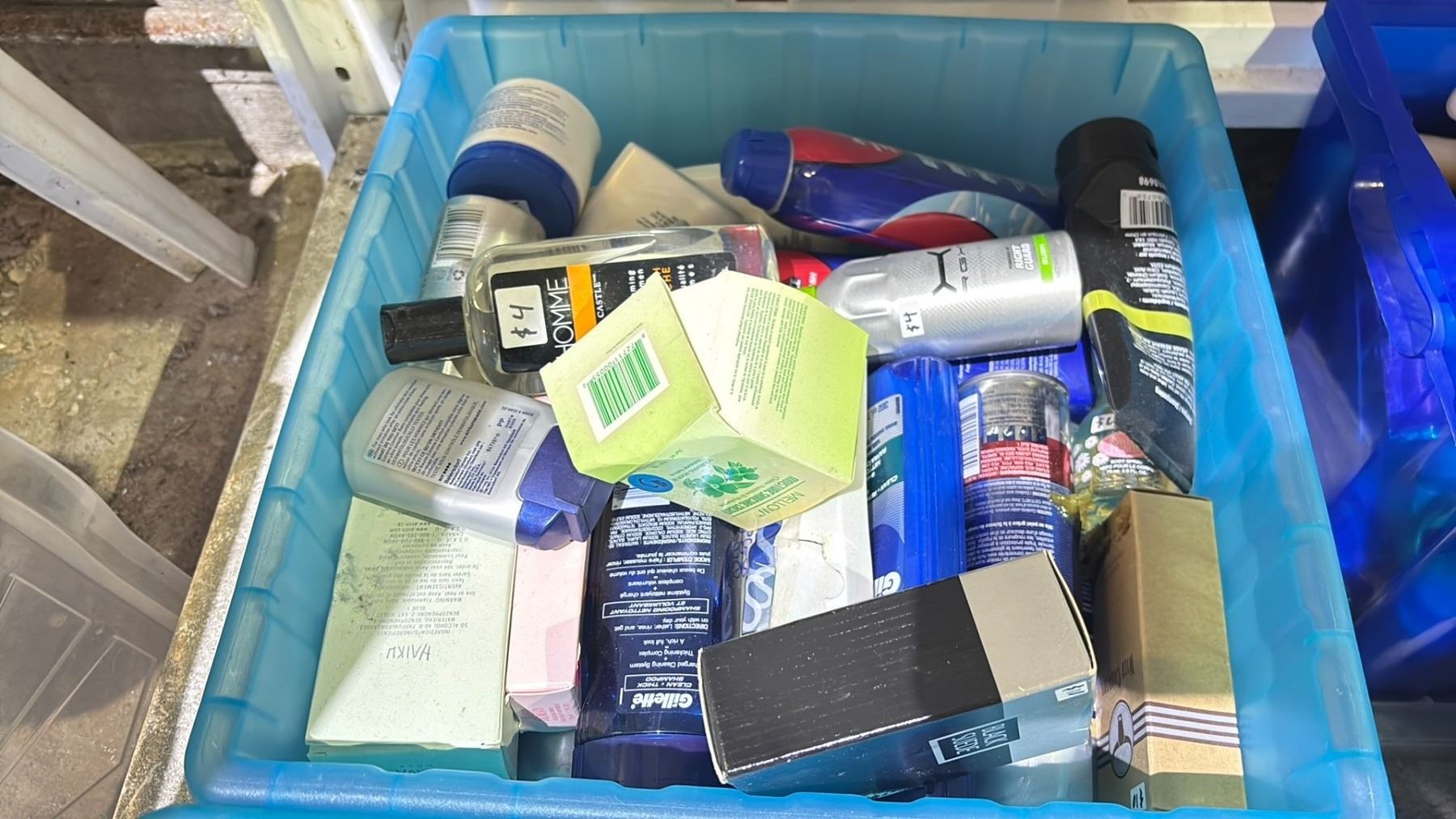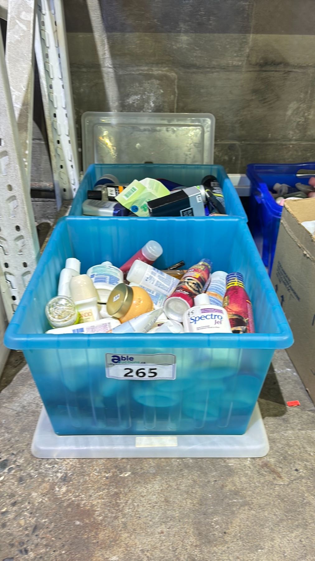 2 BINS OF SHAVING CREAM, BODY WASH, LOTION, SUNSCREEN COLOGNE & MORE