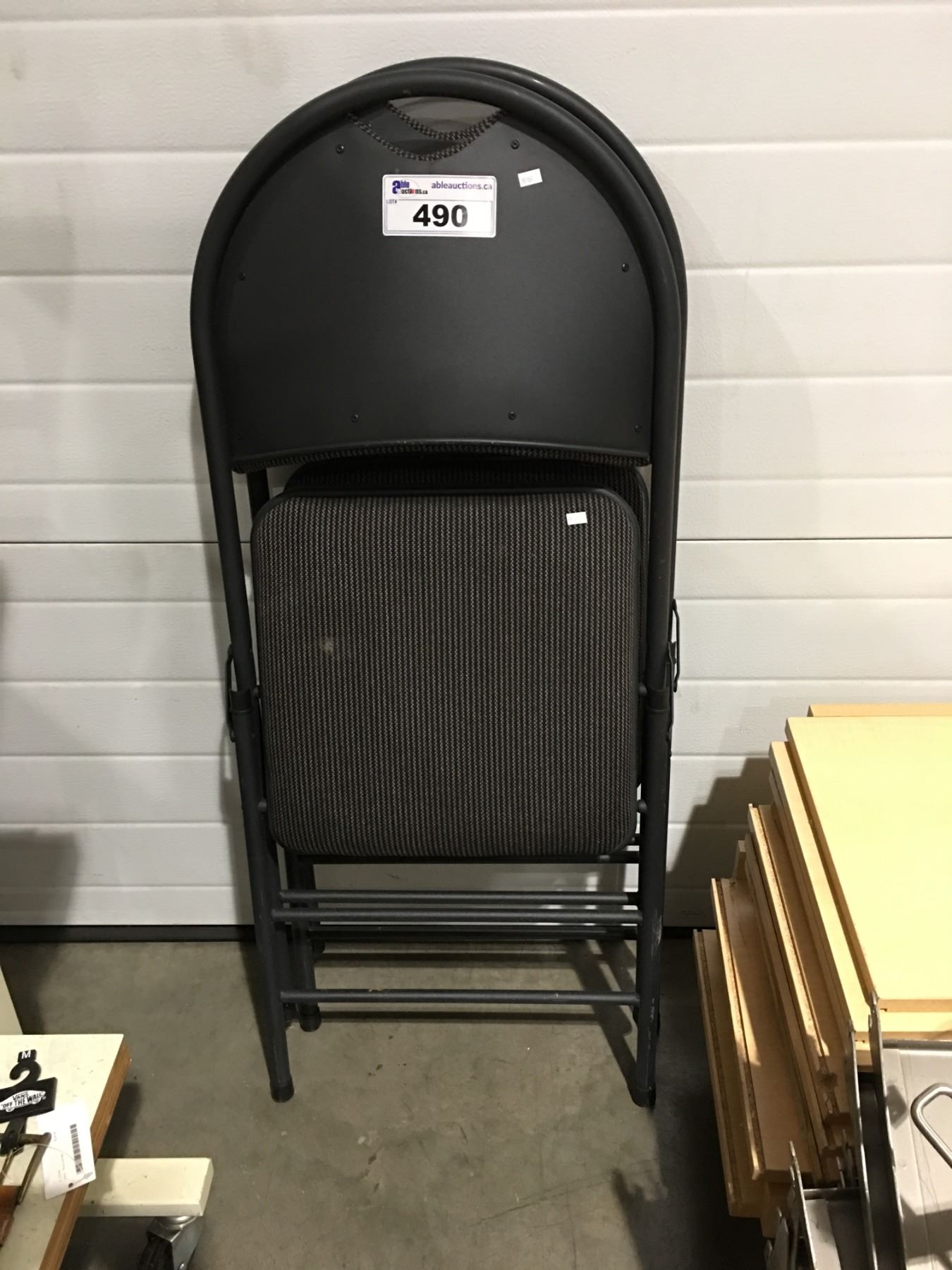 2 BLACK & GREY METAL FRAMED FOLDING CHAIRS