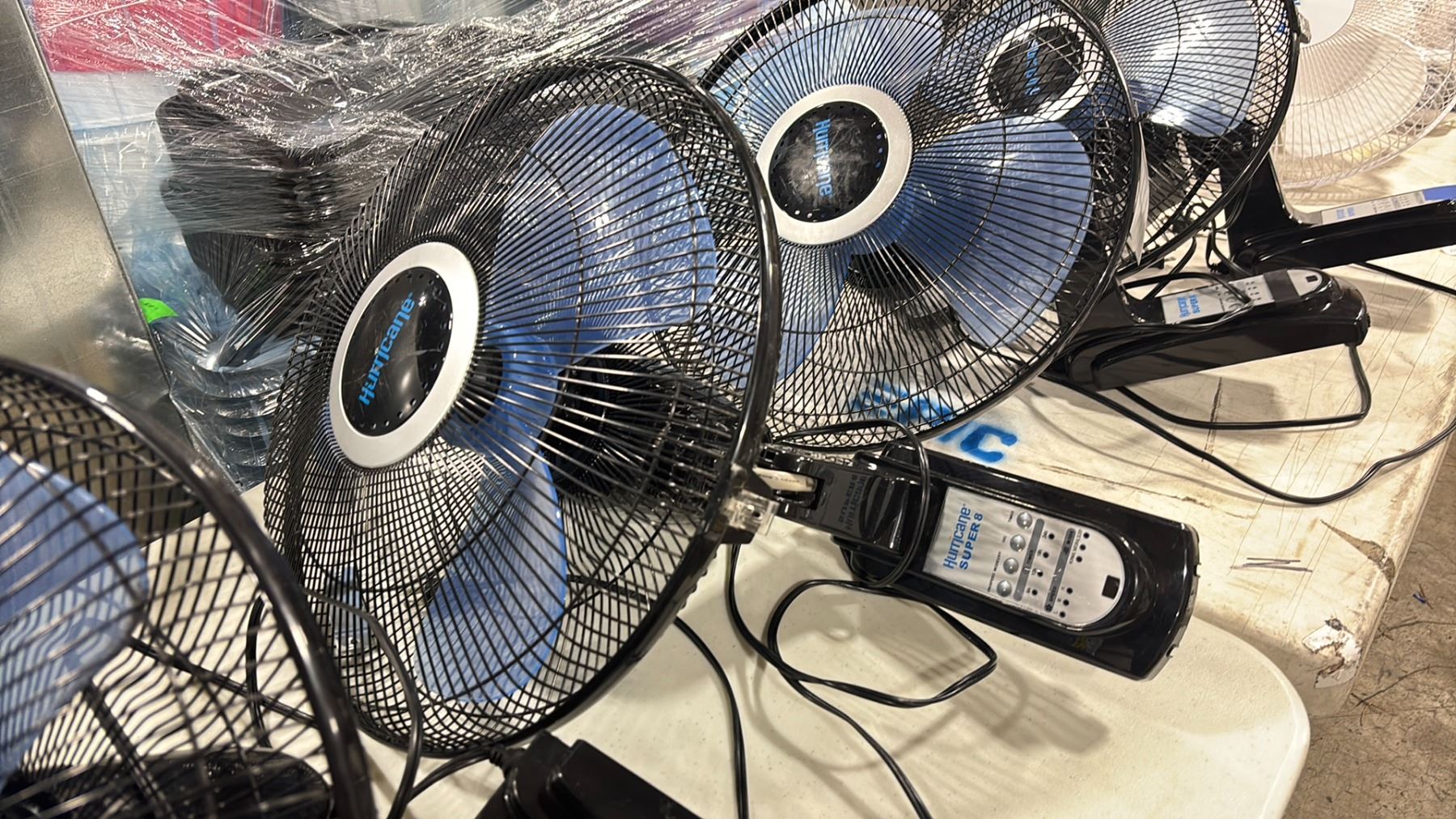 2 BLACK HURRICANE 16" OSCILLATING WALL MOUNTED ELECTRIC FANS