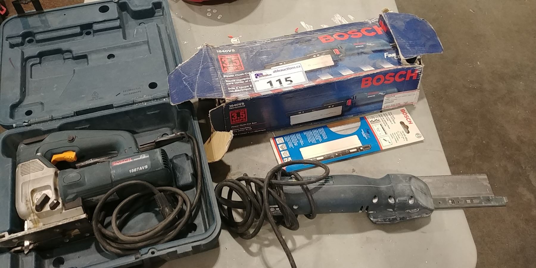 2 BOSCH SAWS. BOSCH FINE CUT MODEL 1640VS WITH FLUSH CUT BLADES, BOSCH JIGSAW MODEL 1587AVS