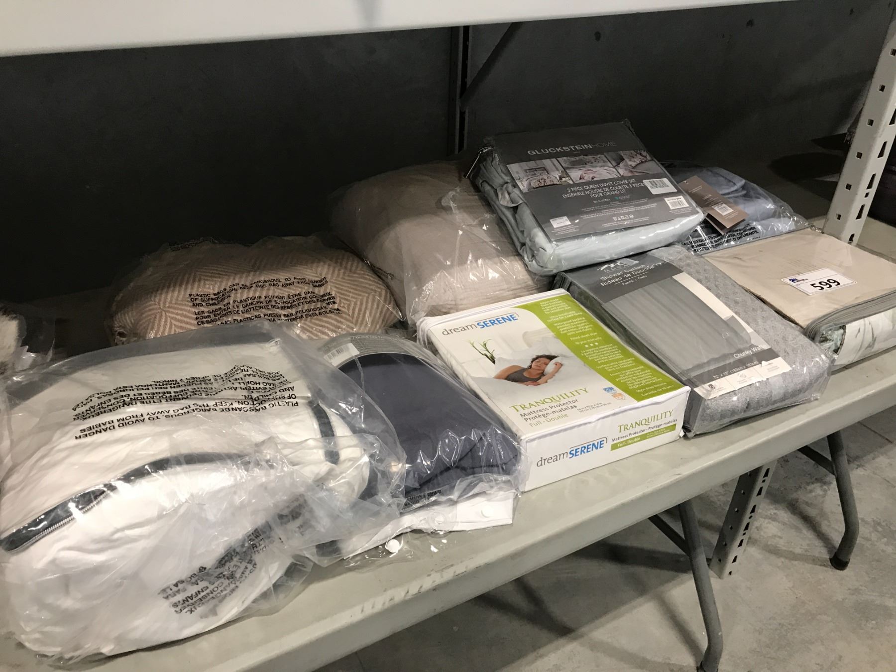 2 BOUTIQUE QUEEN 3 PIECE DUVET COVER SET, MATTRESS PROTECTOR, MODA SHOWER CURTAIN AND MISC BEDDING