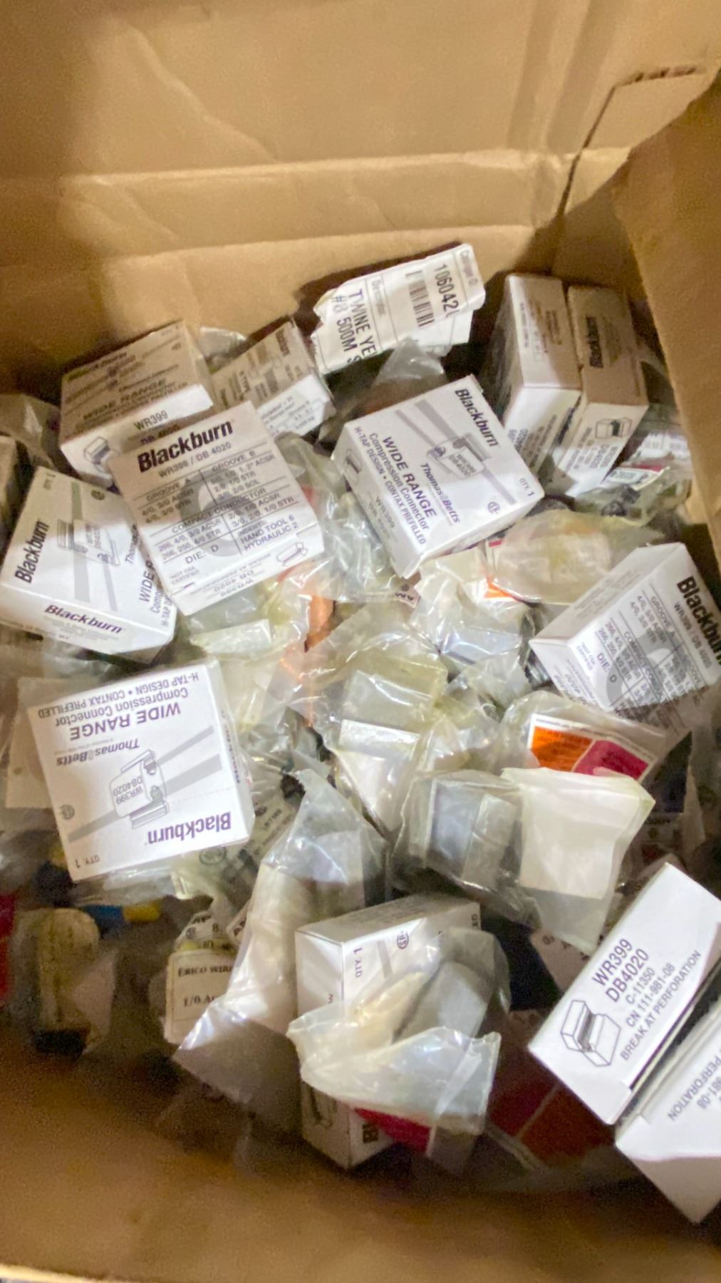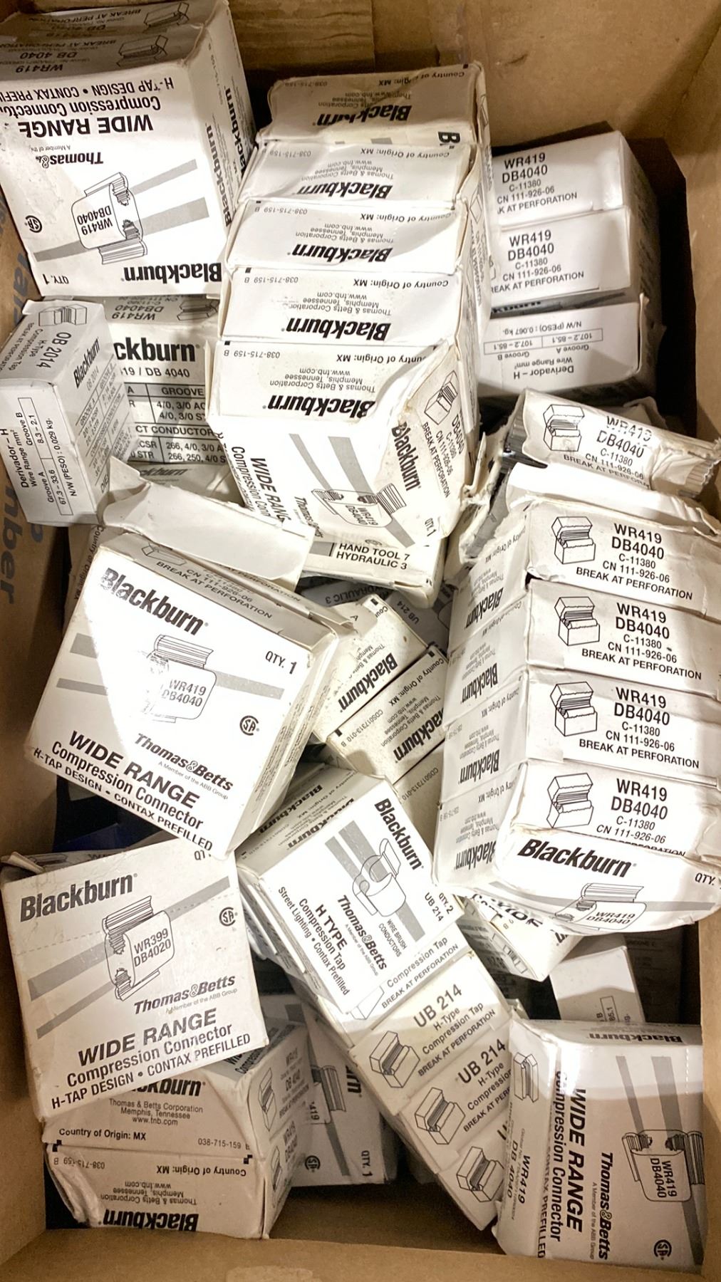 2 BOXES OF ASSORTED ALUMINUM H-TYPE COMPRESSION CONNECTORS & ASSORTED TE CONNECTIVITY AMPACT TAP CONNECTORS