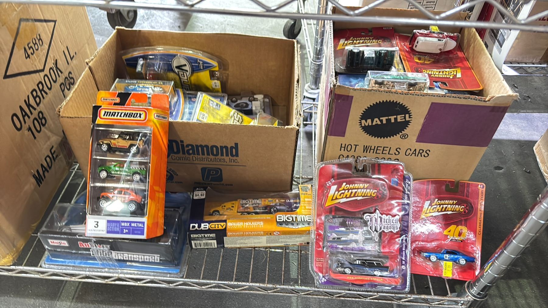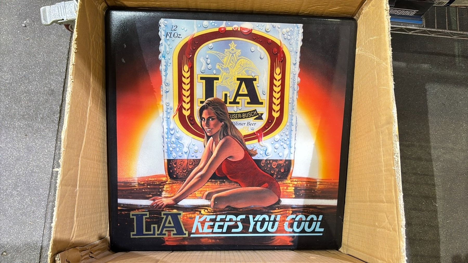2 BOXES OF ASSORTED DIE CAST VEHICLES - MATCHBOX, JOHNNY LIGHTNING & A LIGHT UP BEER SIGN