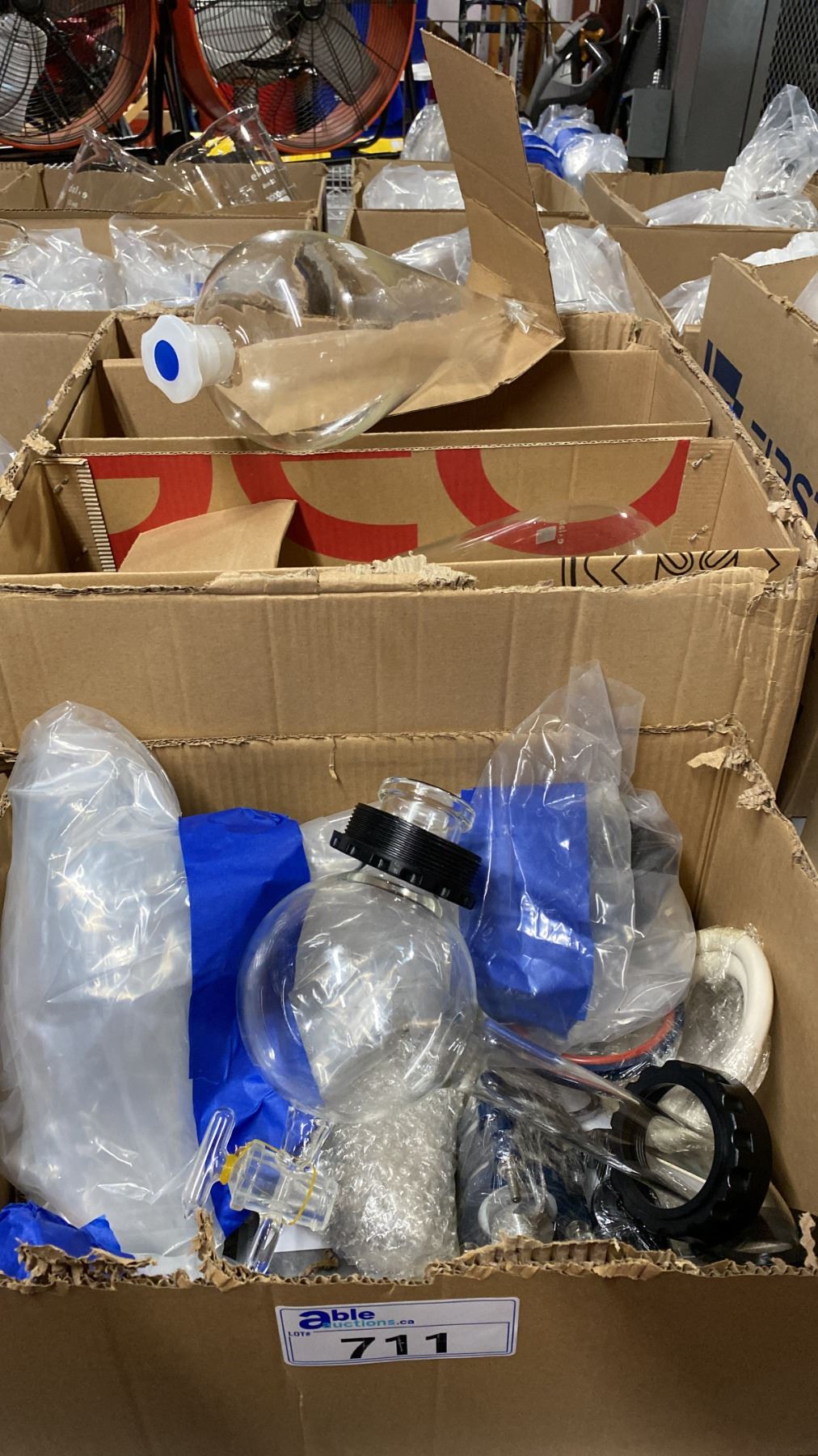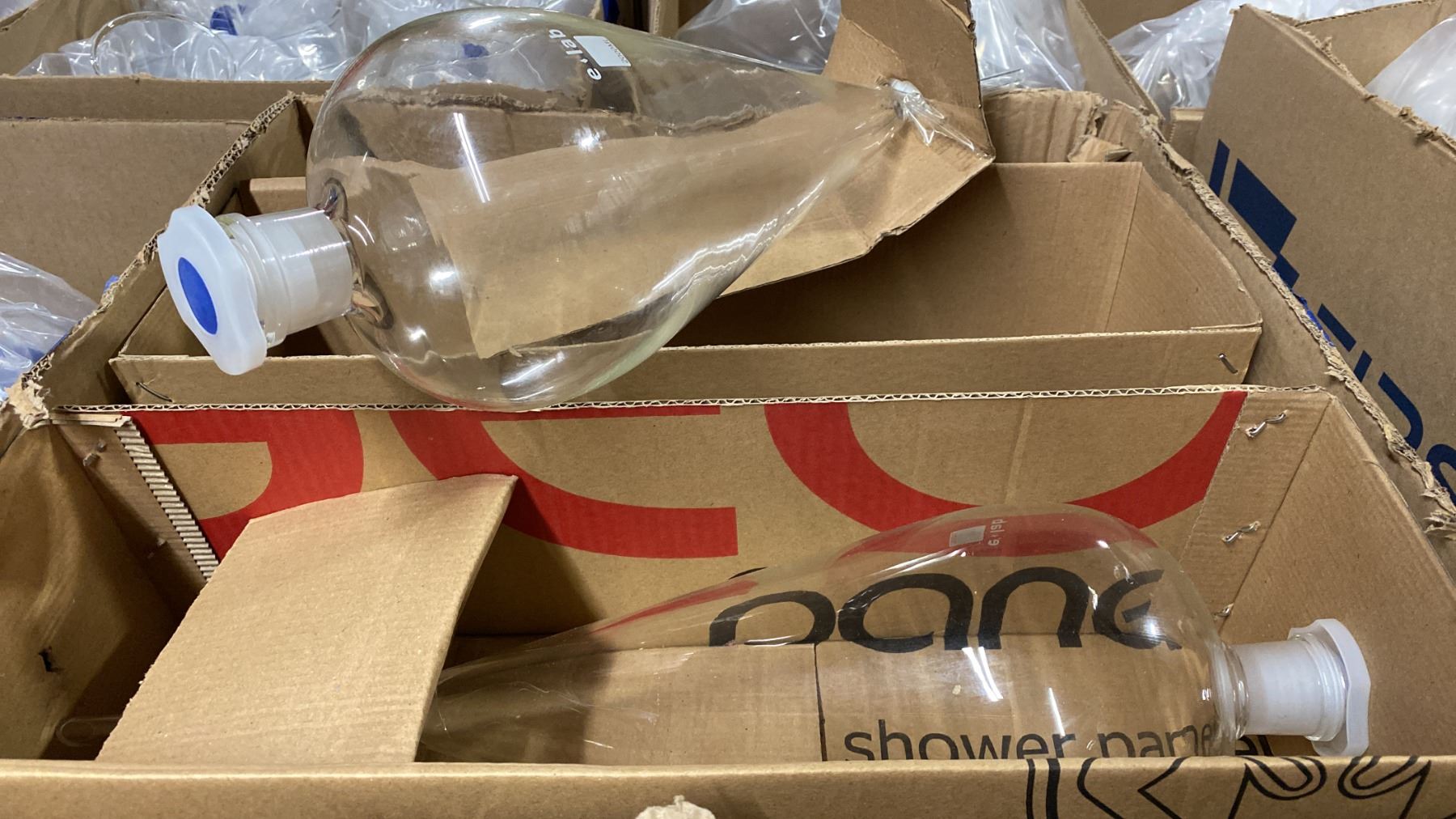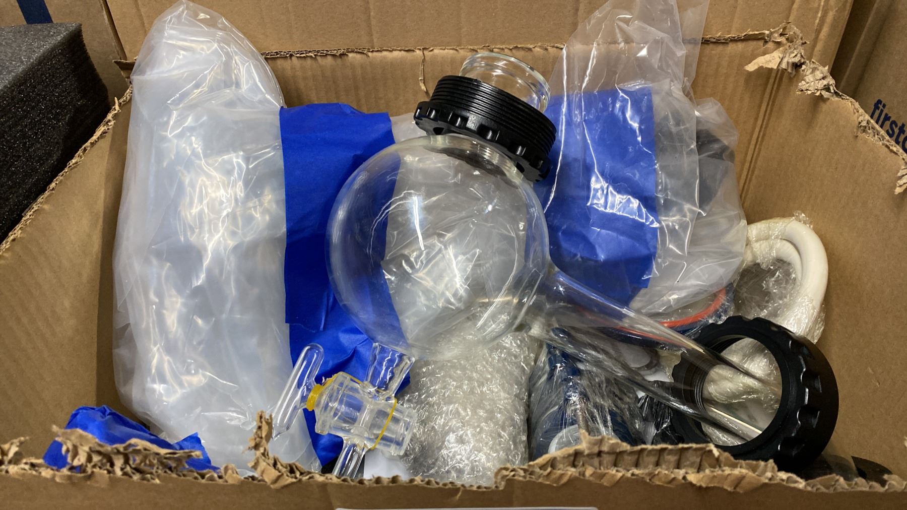 2 BOXES OF ASSORTED LABORATORY GLASSWARE & PARTS
