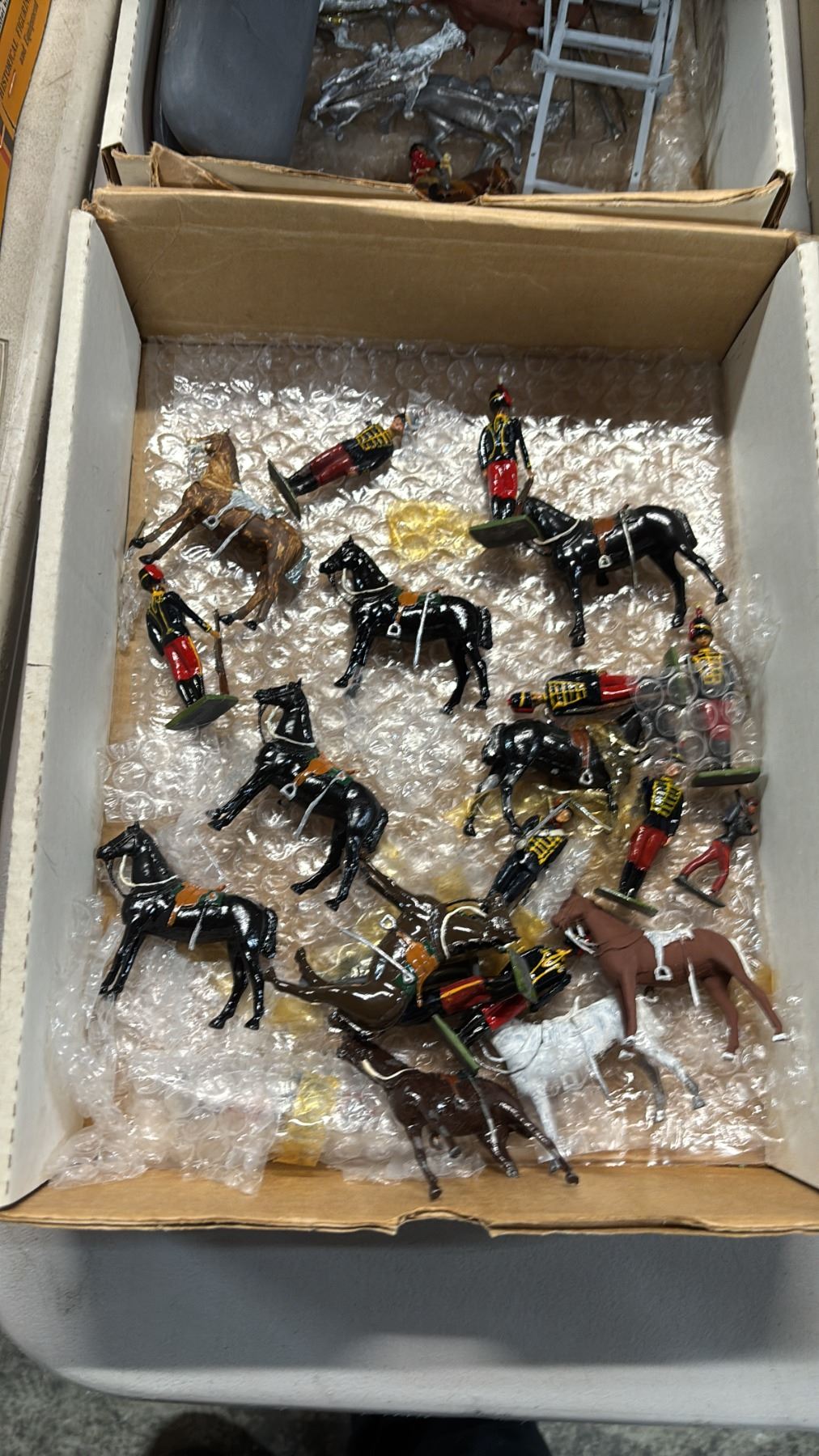 (2) BOXES OF ASSORTED PAINTED METAL SOLDIER MINIATURES & HORSES