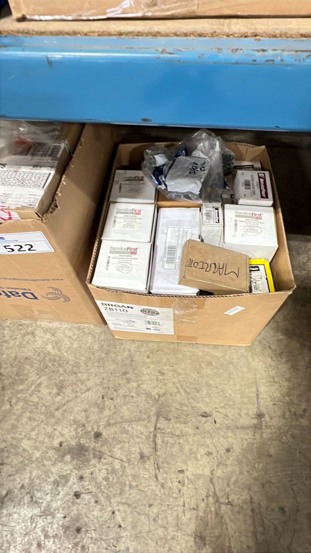 2 BOXES OF ASSORTED SUCTION LINE FILTER DRIERS, CONTACTORS, GAS CONTROLS, LIMIT SWITCHES, GAS KITS