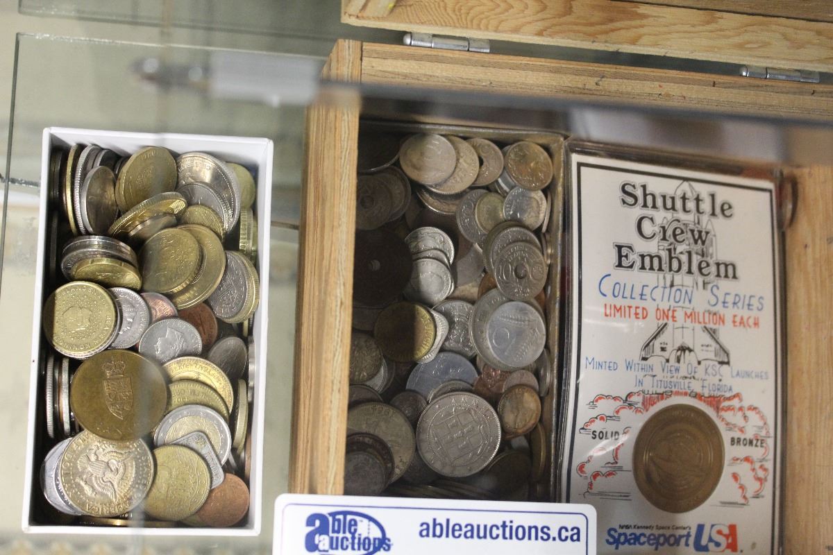 2 BOXES OF ASSORTED WORLD COINS AND TOKENS