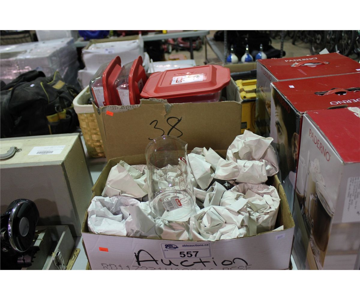2 BOXES OF BEAKERS AND PYREX GLASS WARE