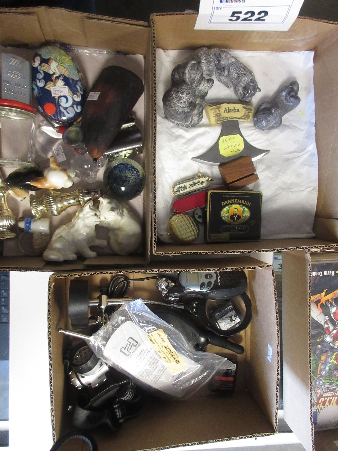 2 BOXES OF COLLECTABLES/BOX OF ASSORTED MISC WALKIE TALKIES, HEAD LAMP, BATTERY/ETC (B1)