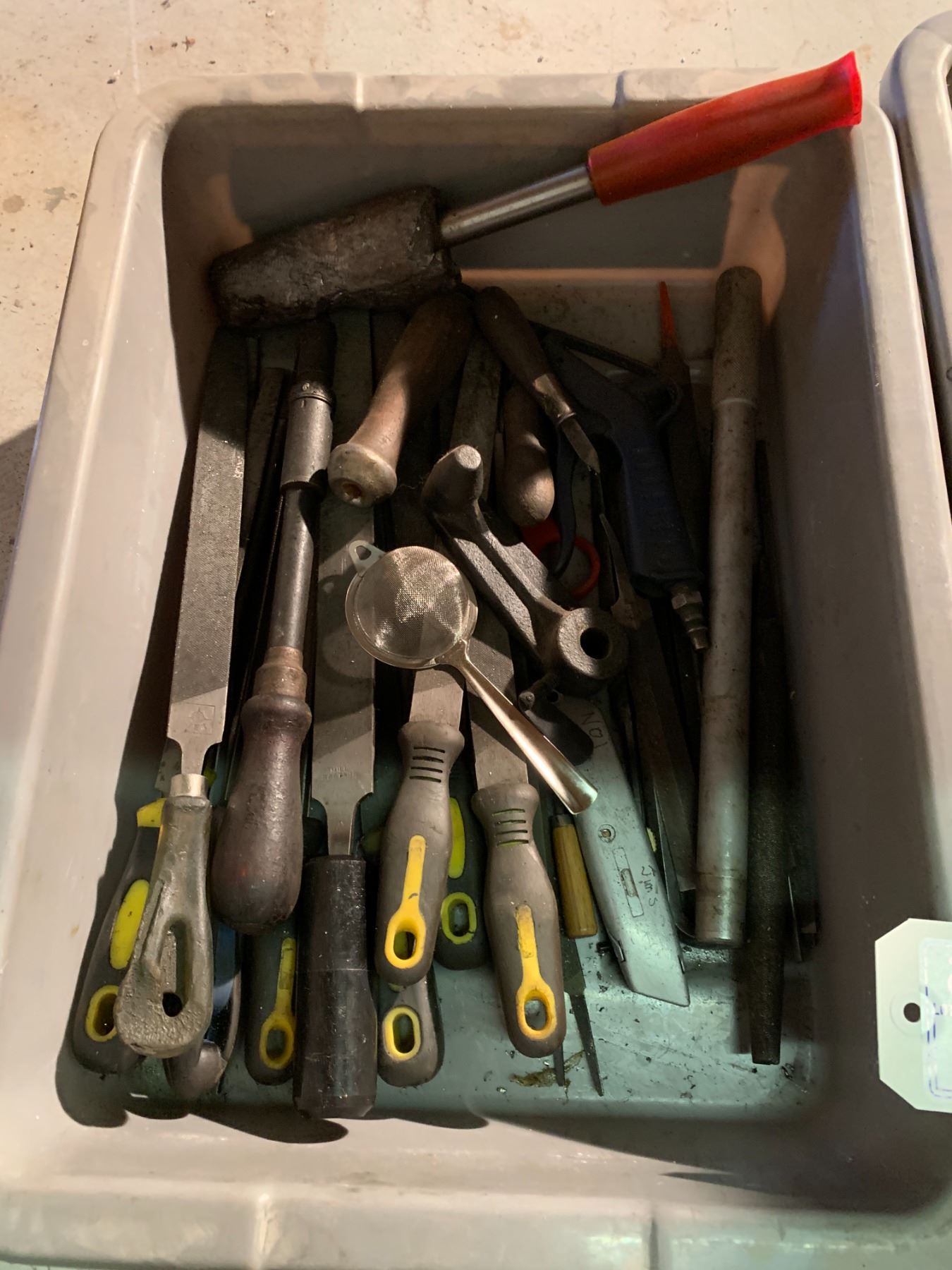 2 BOXES OF FILES AND ASSORTED TOOLS