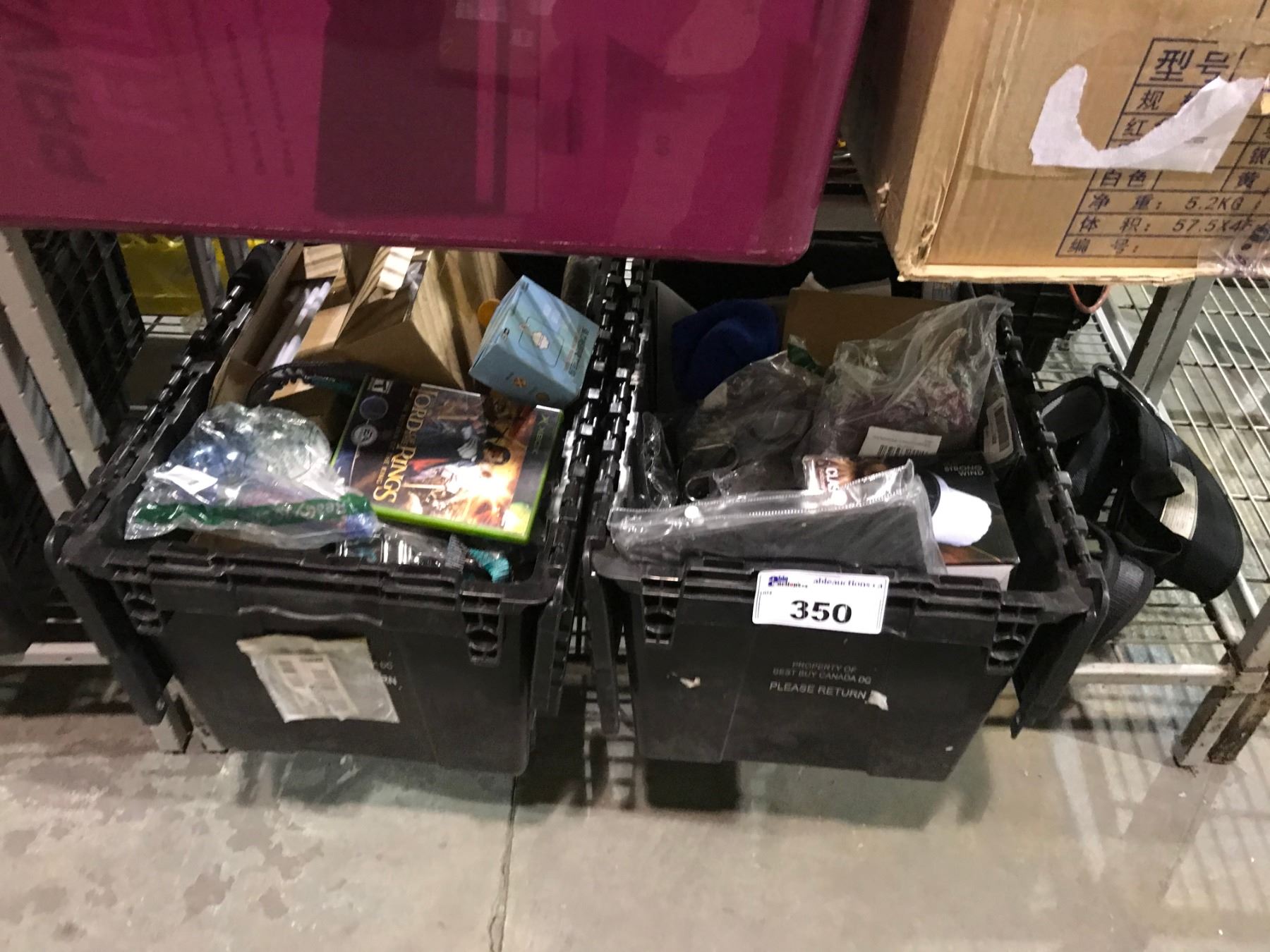 2 BOXES OF FITNESS RELATED ITEMS, ELECTRONIC ACCESSORIES, LEASH, SPRAY NOZZLES, MISC