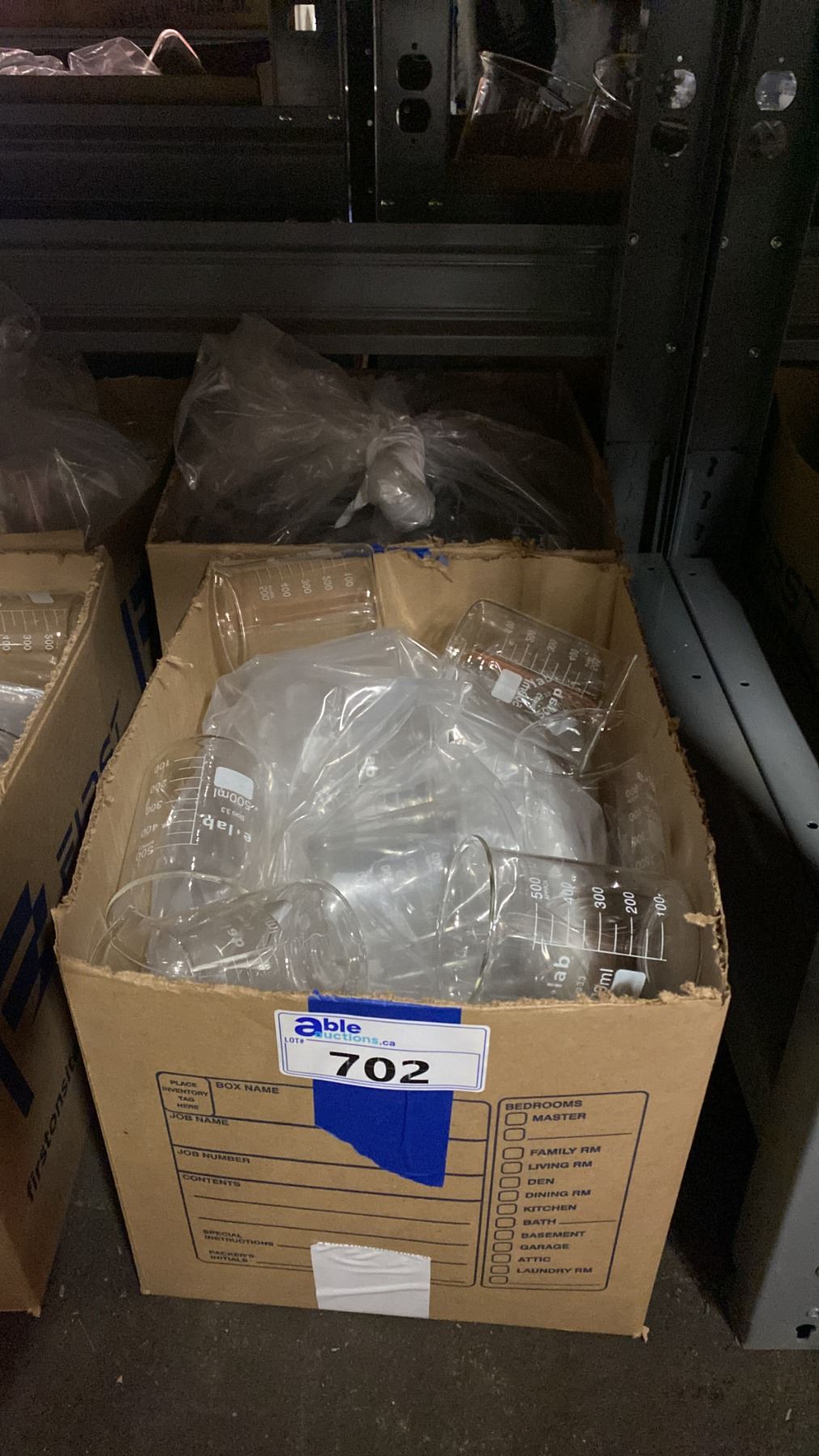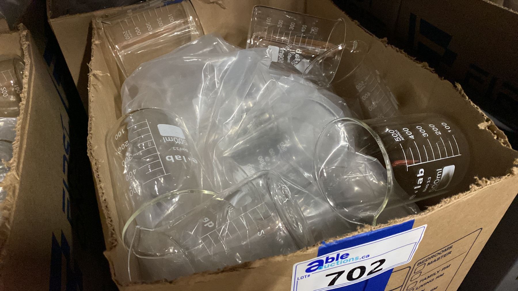 2 BOXES OF LABORATORY GLASS BEAKERS