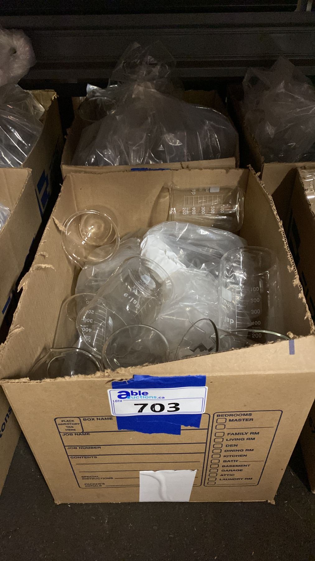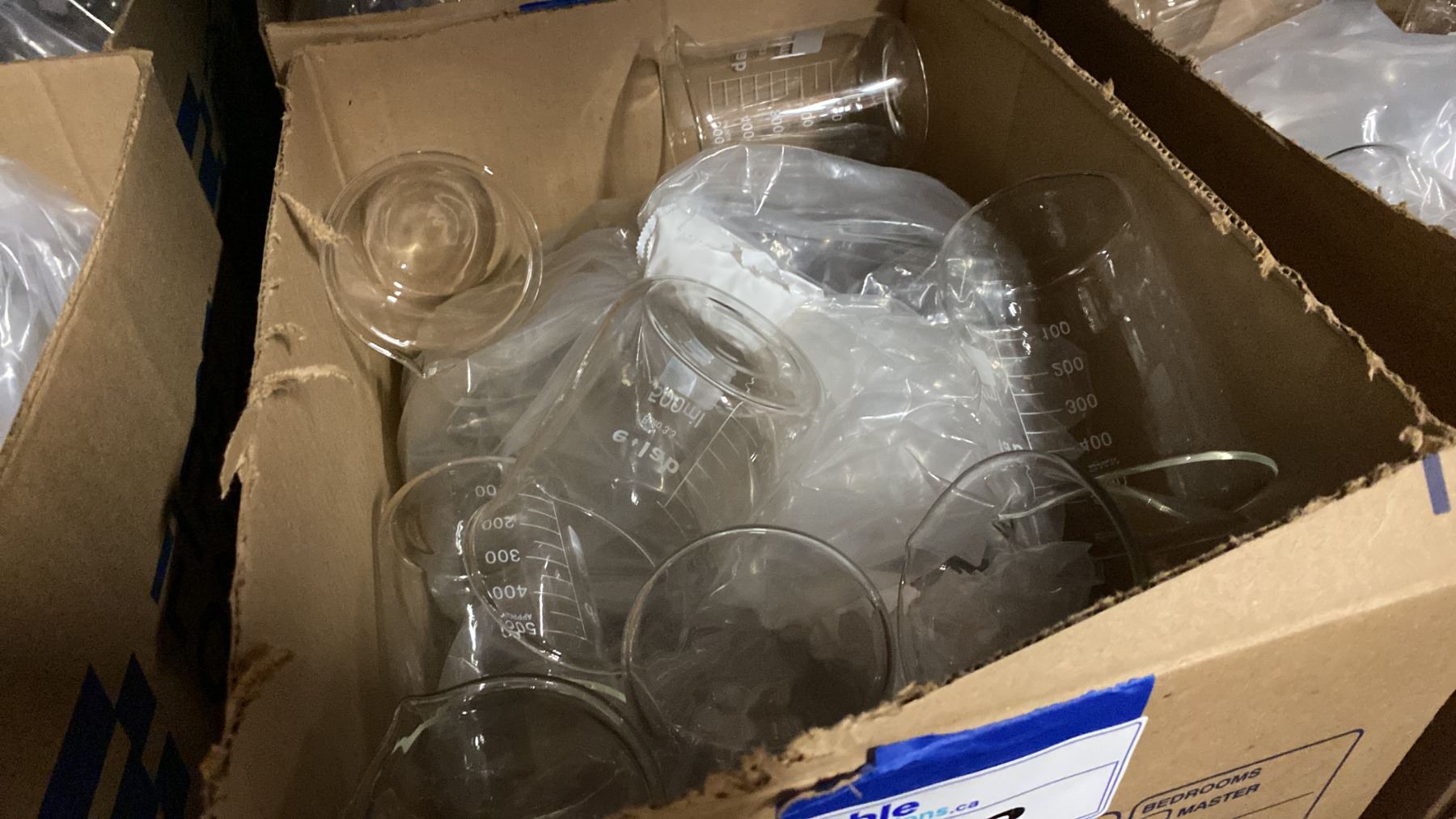 2 BOXES OF LABORATORY GLASS BEAKERS