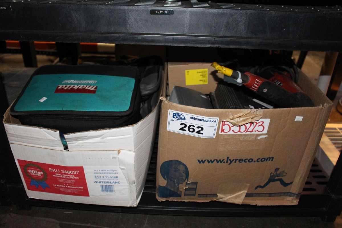 2 BOXES OF MISC ELECTRONICS AND TOOLS