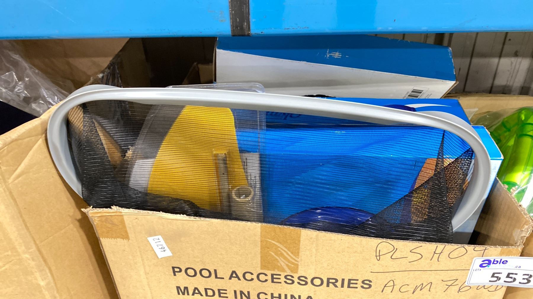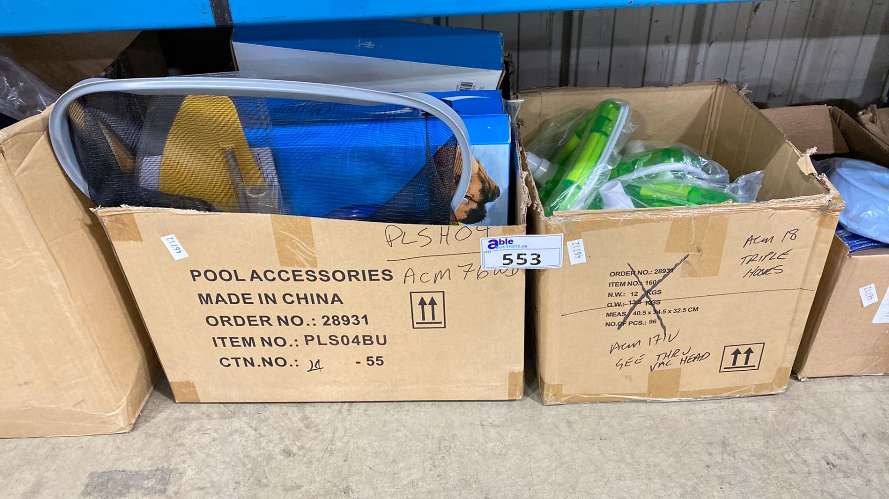 2- BOXES OF POOL BRUSHES, ATTACHMENTS & SKIMMER NETS