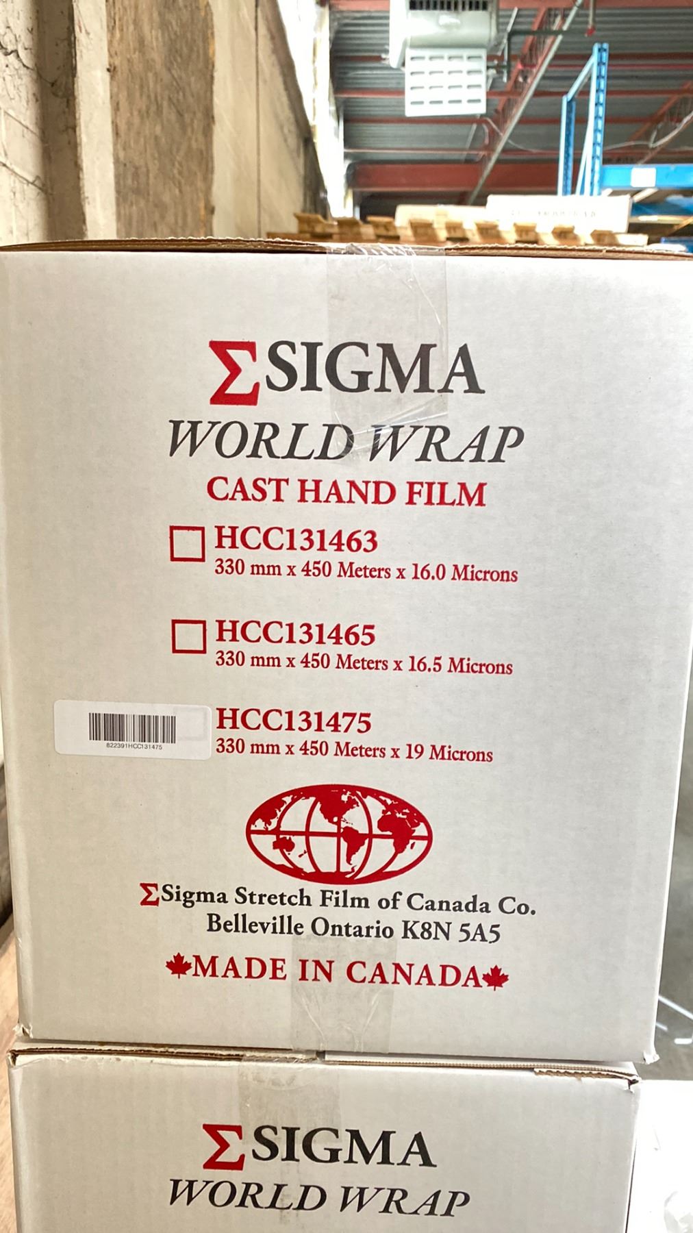 2 BOXES OF SIGMA WORLD WRAP HCC131475 CAST HAND FILM - 330MM X 450 METERS X 19 MICRONS