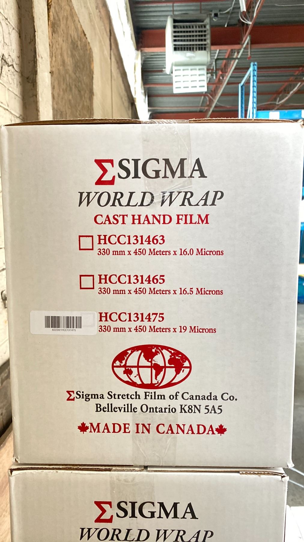 2 BOXES OF SIGMA WORLD WRAP HCC131475 CAST HAND FILM - 330MM X 450 METERS X 19 MICRONS