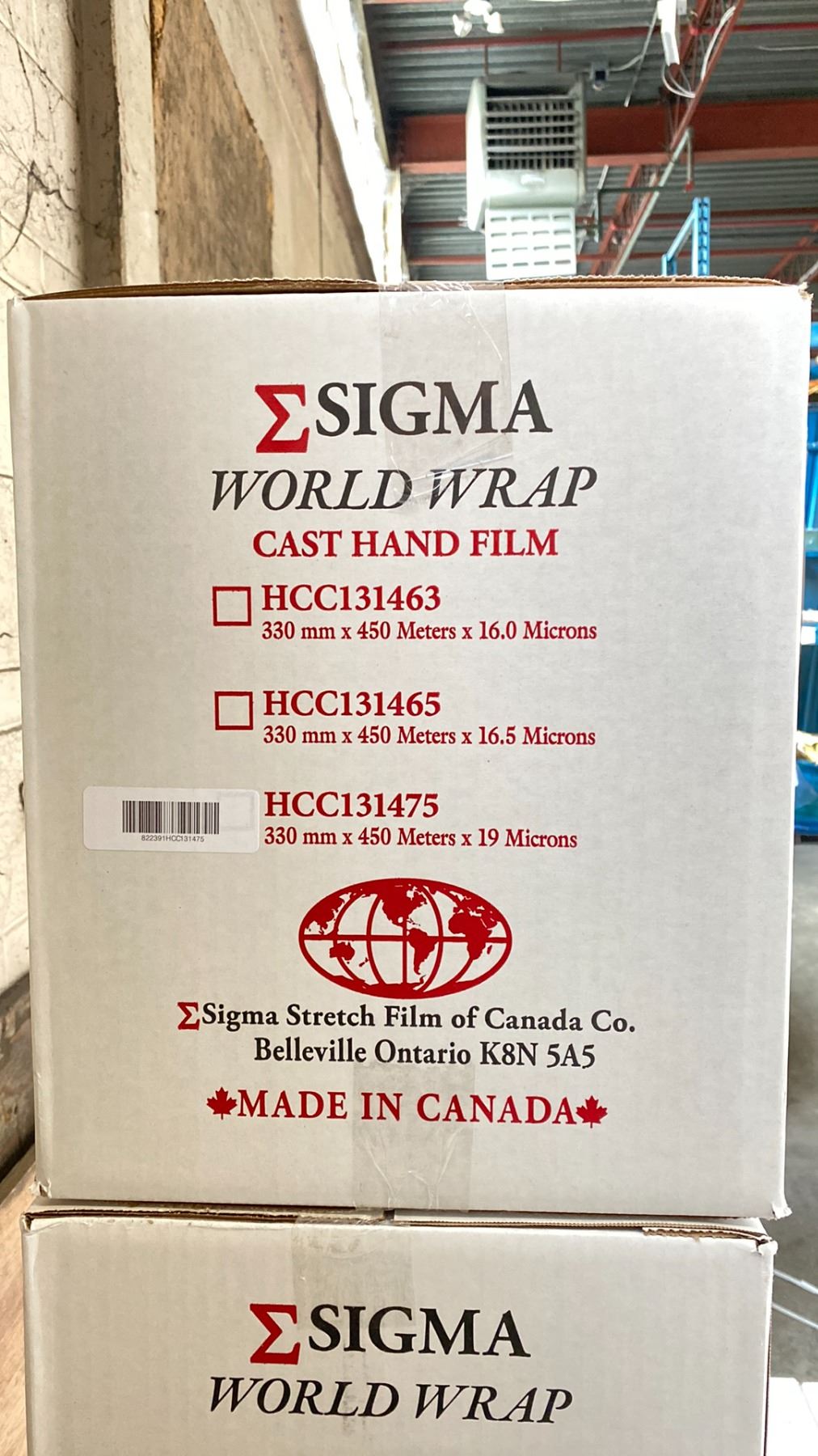 2 BOXES OF SIGMA WORLD WRAP HCC131475 CAST HAND FILM - 330MM X 450 METERS X 19 MICRONS