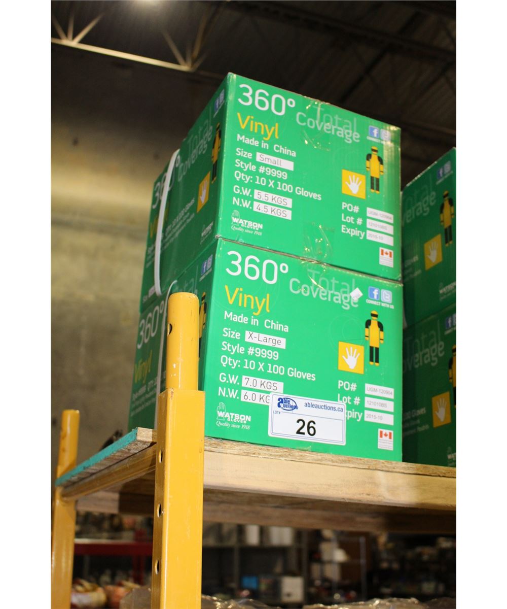 2 BOXES OF VINYL GLOVES - ONE BOX SMALL, ONE BOX XL