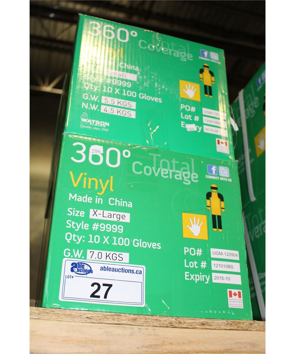 2 BOXES OF VINYL GLOVES - ONE BOX SMALL, ONE BOX XL