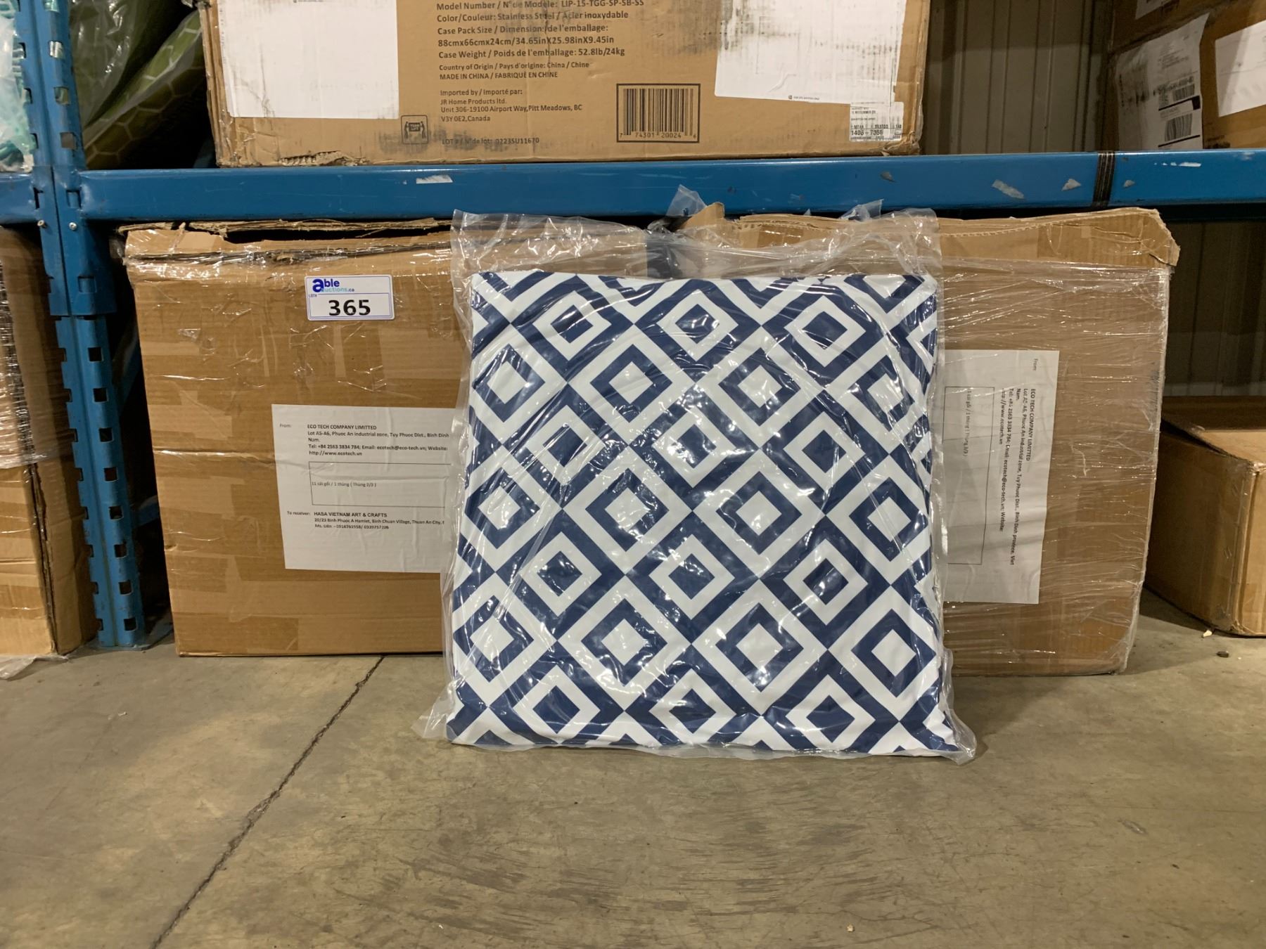 2 BOXES OF WHITE & BLUE PATIO CUSHIONS ( APPROXIMATELY 20" X 20" )