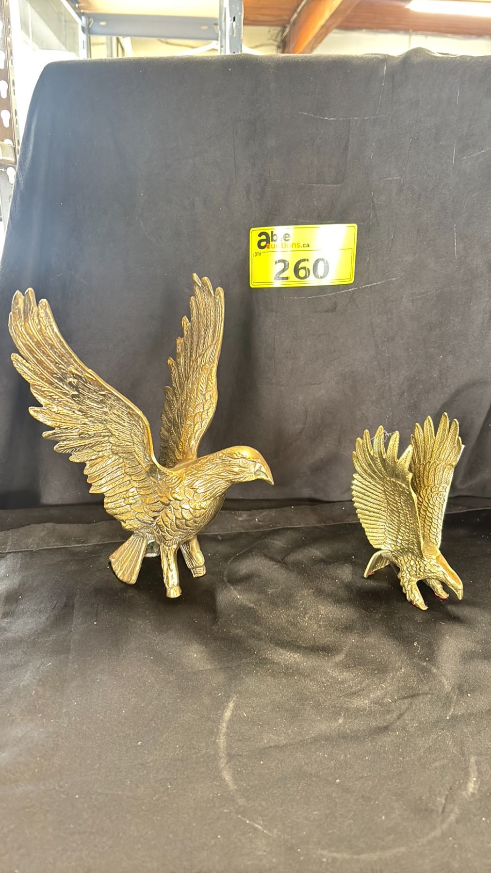 2 BRASS SCULPTURES OF EAGLE 7" X 9.5" & 3" X 5.5"