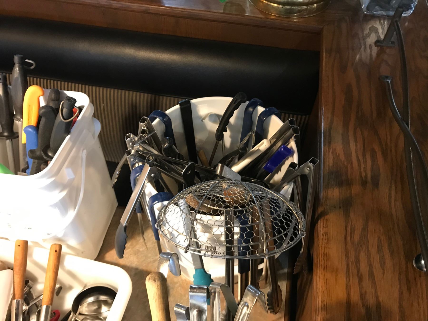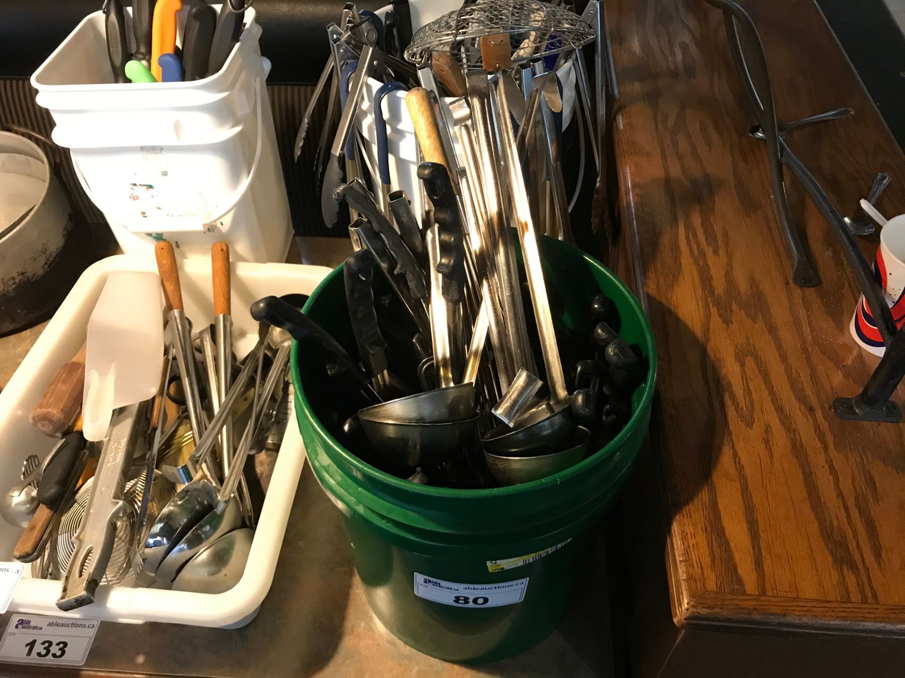 2 BUCKETS OF ASSORTED RESTAURANT TOOLS & UTENSILS