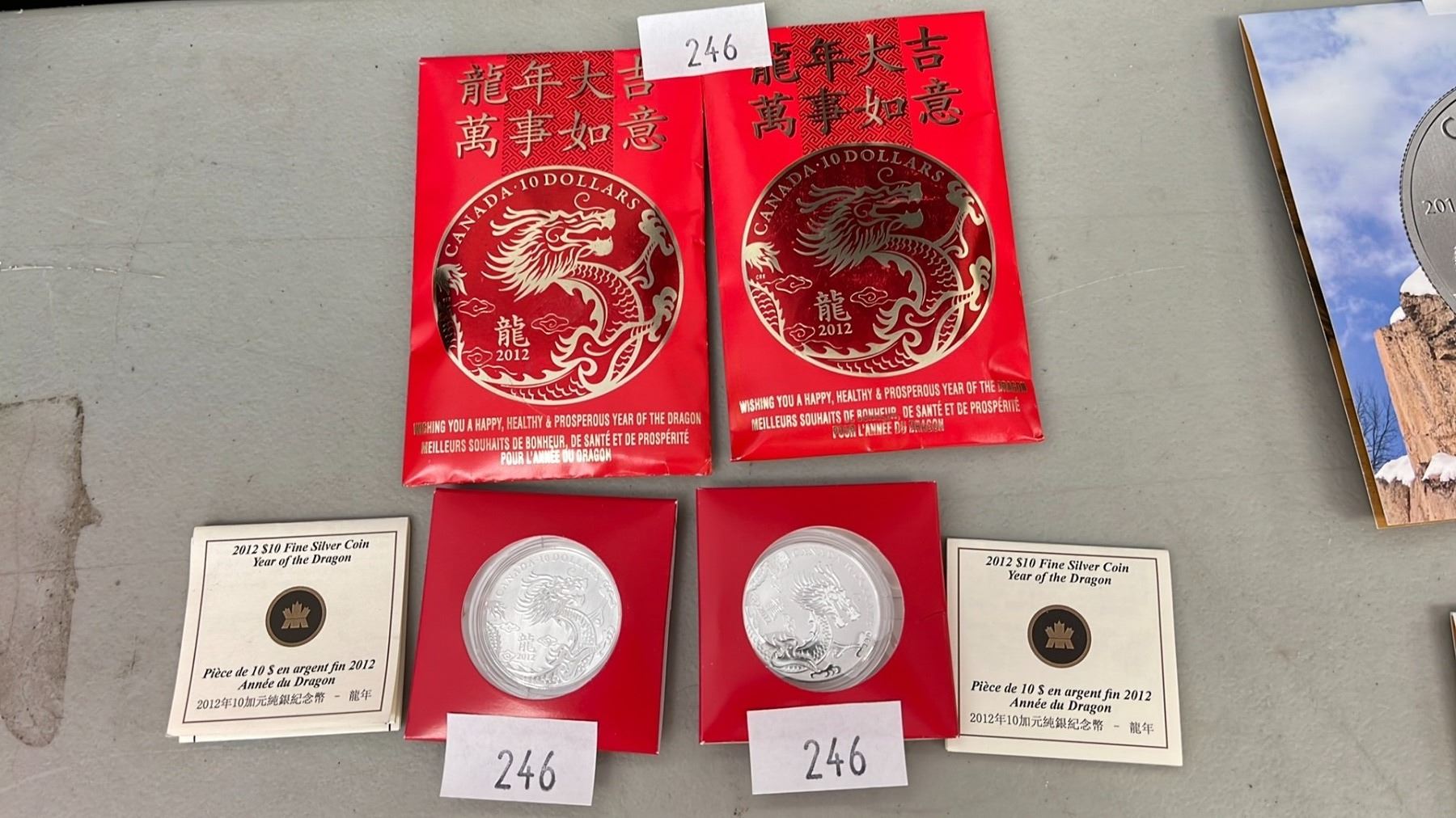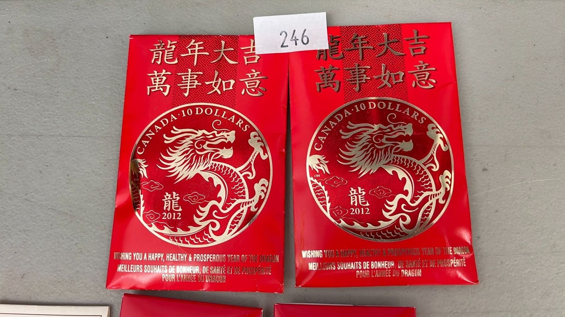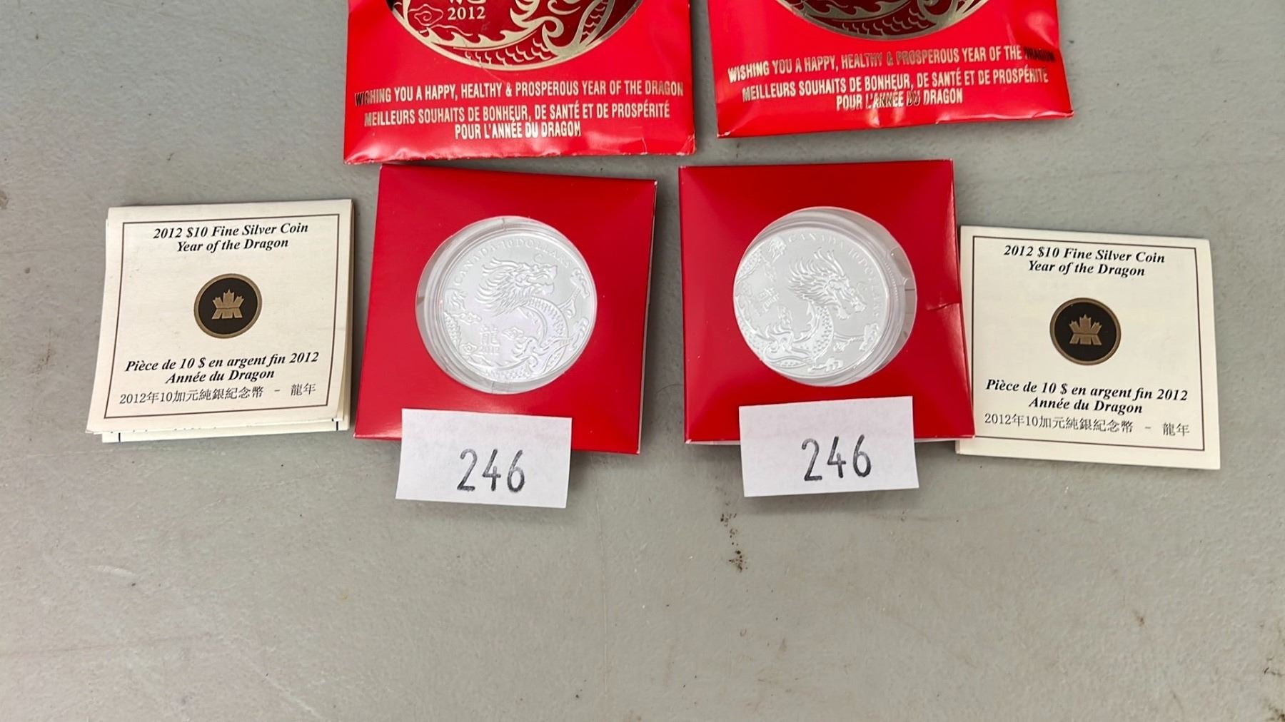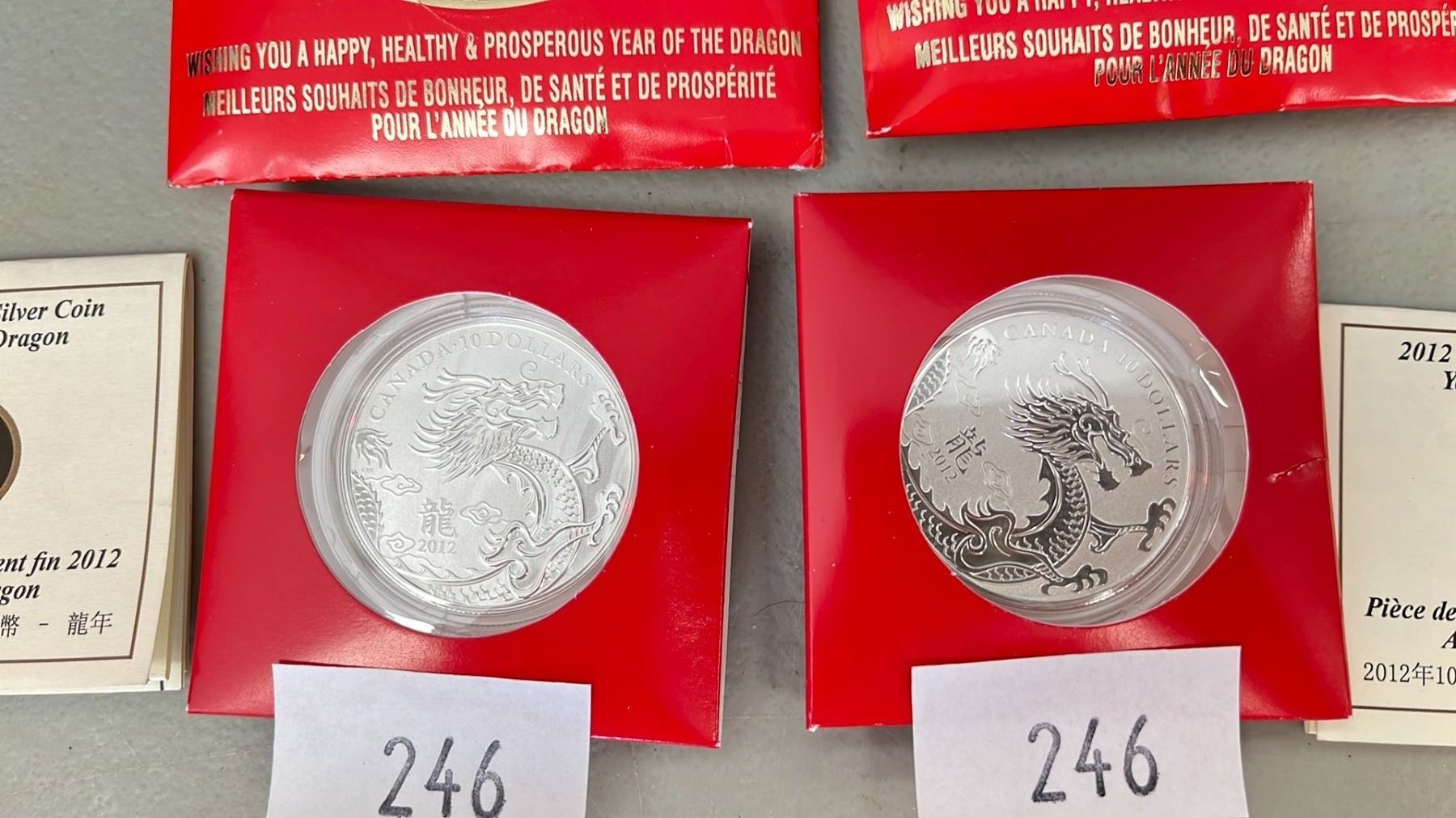 2 CANADIAN MINT 2012 $10 FINE SILVER YEAR OF DRAGON COIN
