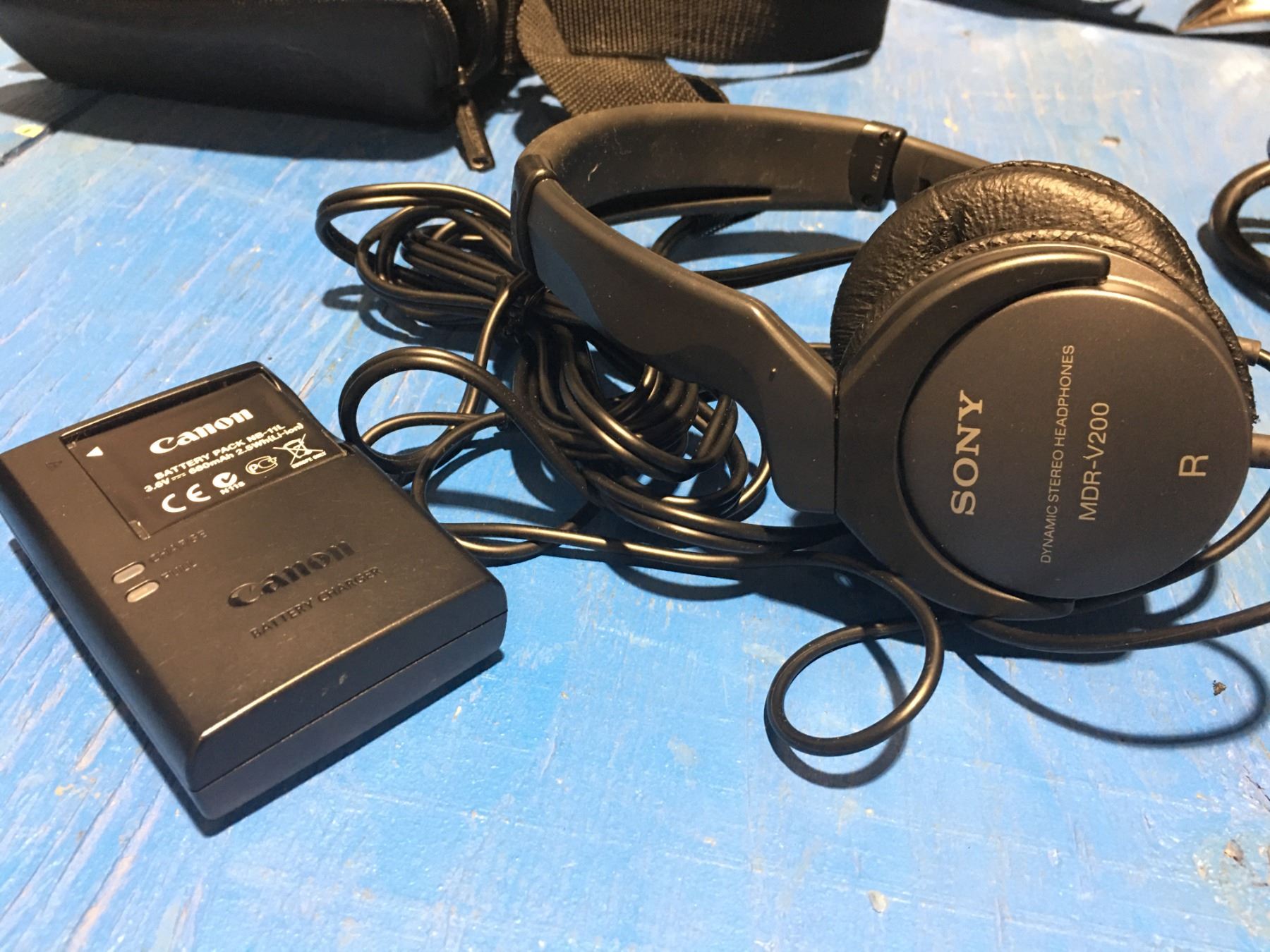 2 CANON CAMERAS/MAG LIGHT/SONY HEADPHONES & 2 CARRYING CASES