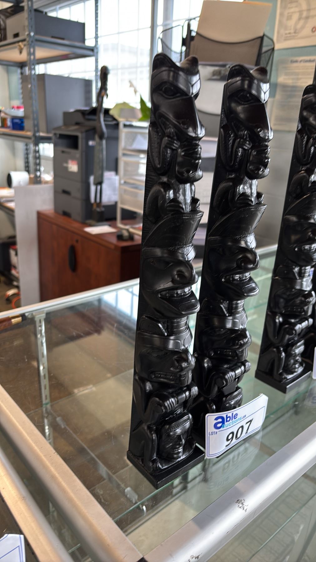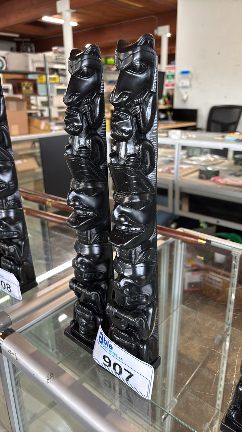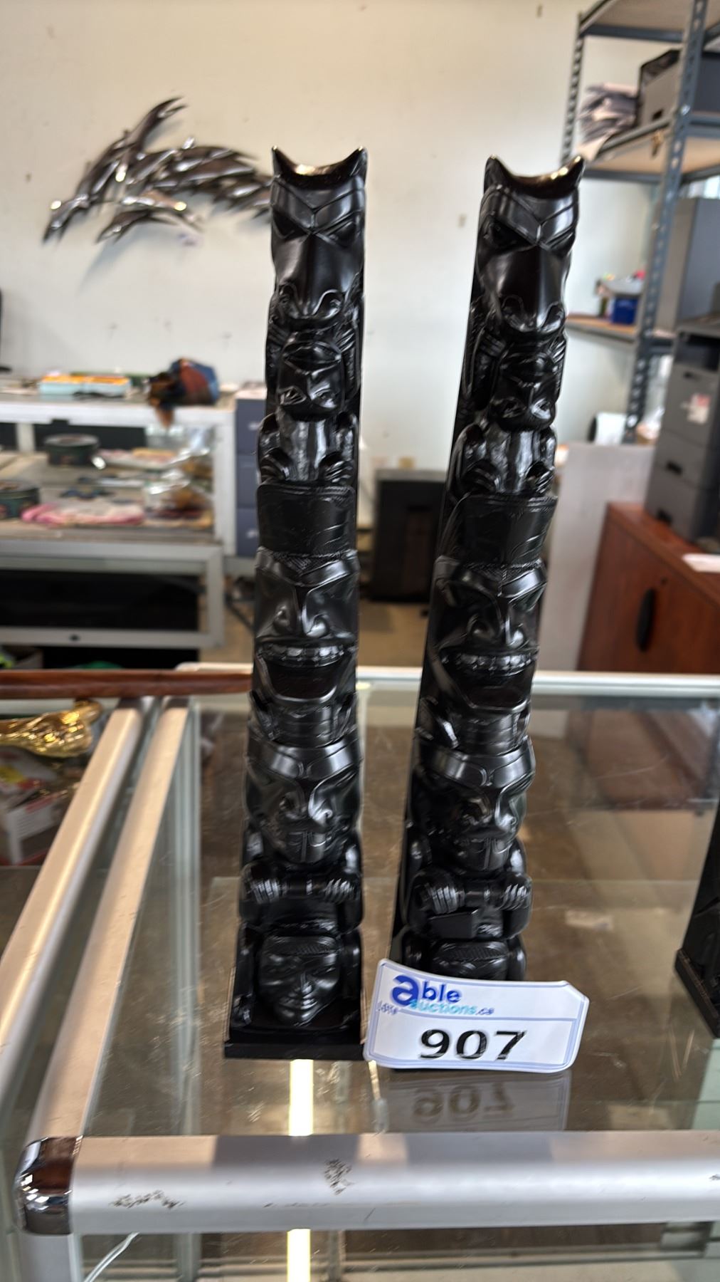 (2) CARVED REPLICA FIRST NATIONS 15.5" TOTEM POLES