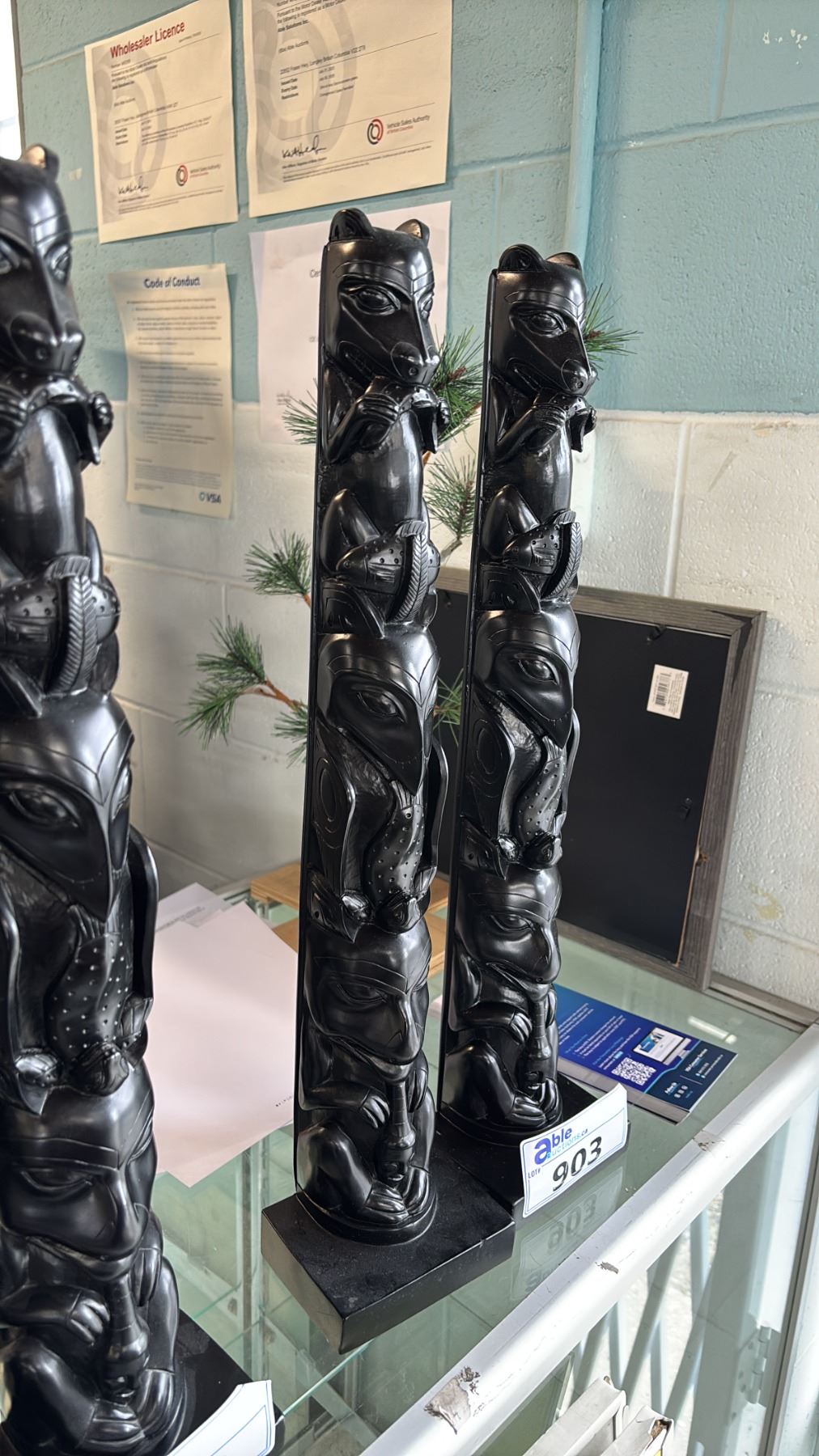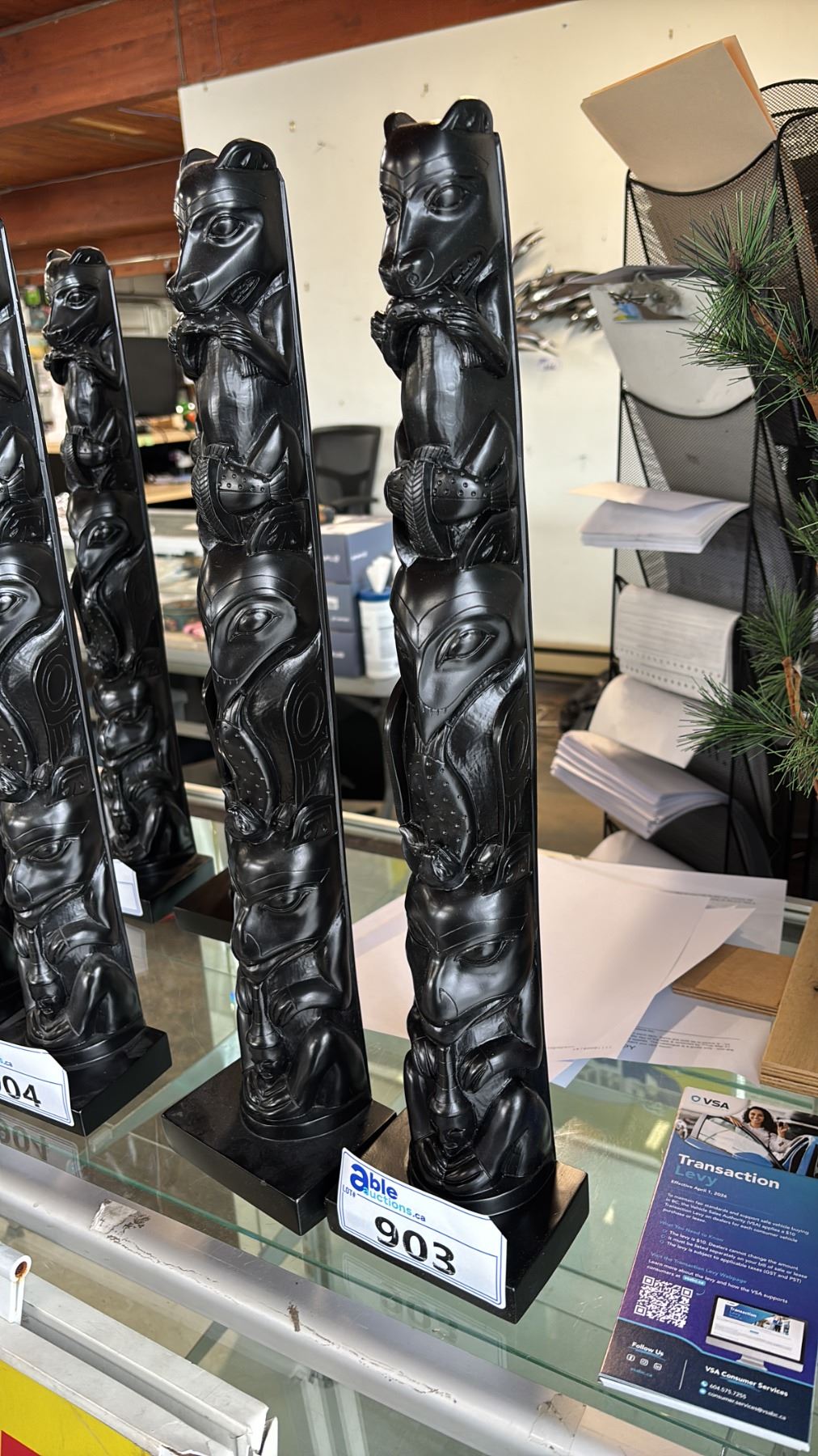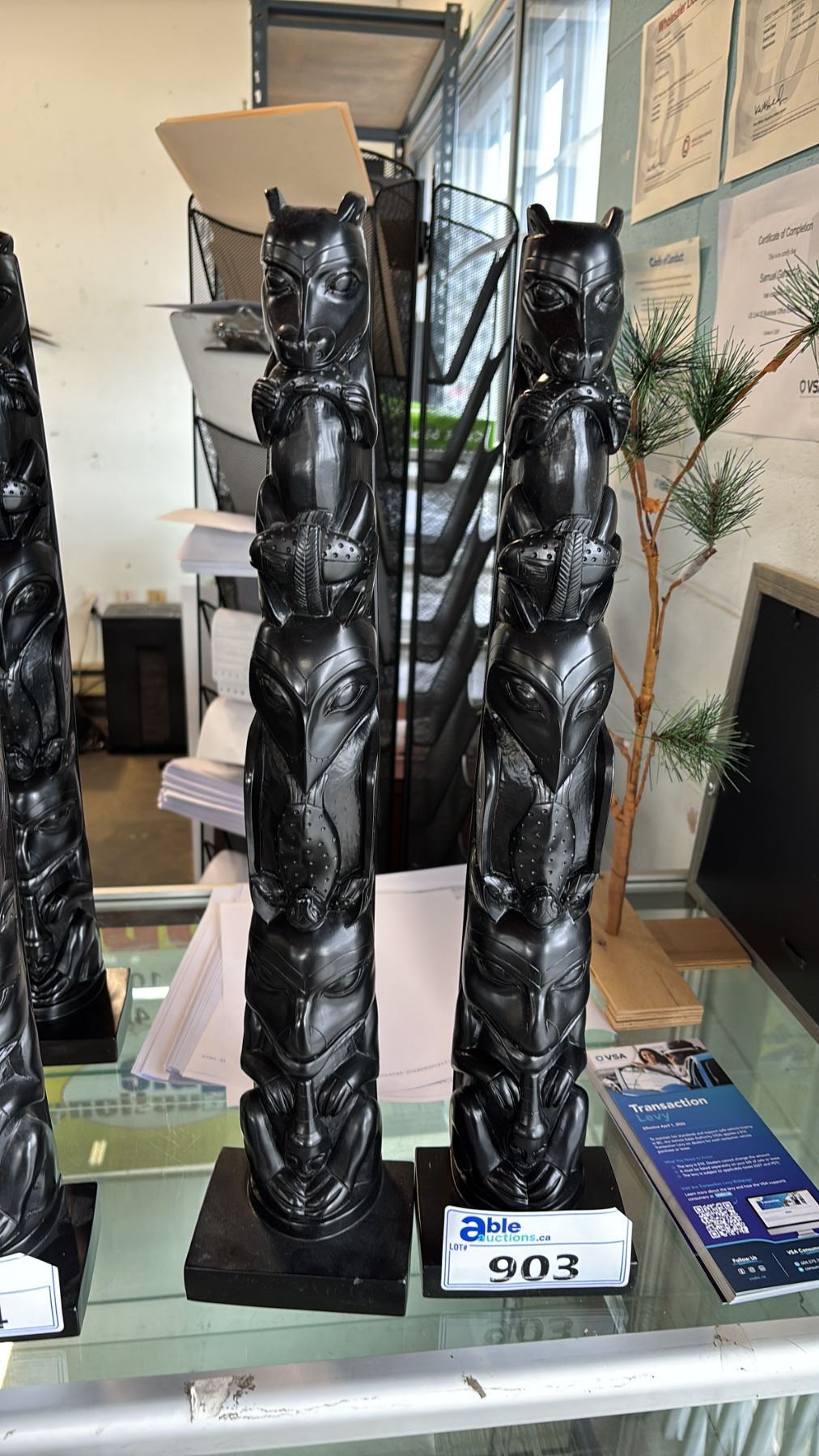 (2) CARVED REPLICA FIRST NATIONS 21.5" TOTEM POLES