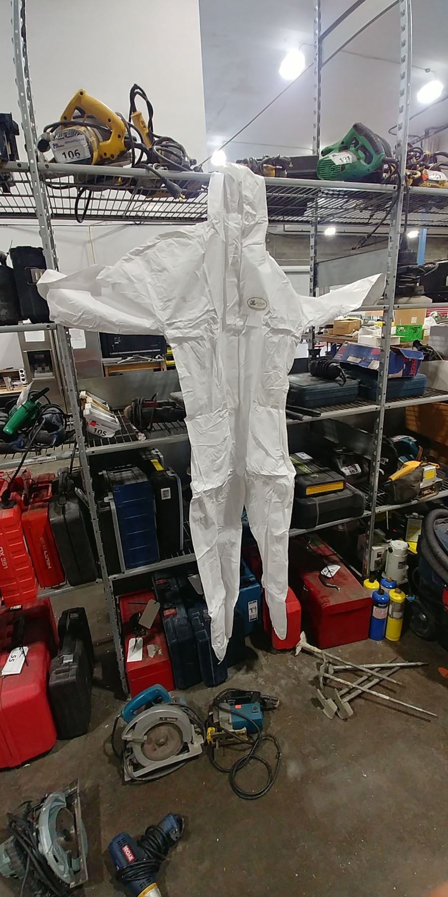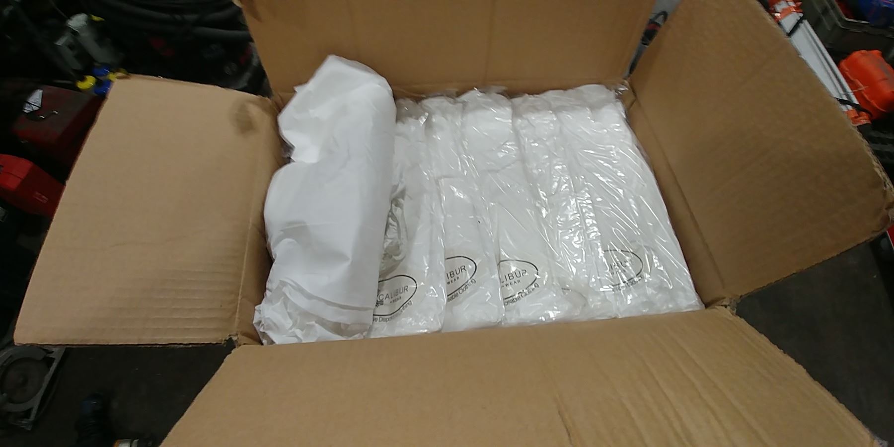 2 CASES EXCALIBUR ZIPPERED DISPOSABLE OVERALLS WITH HOOD SIZE L & XL 25 PIECES PER BOX