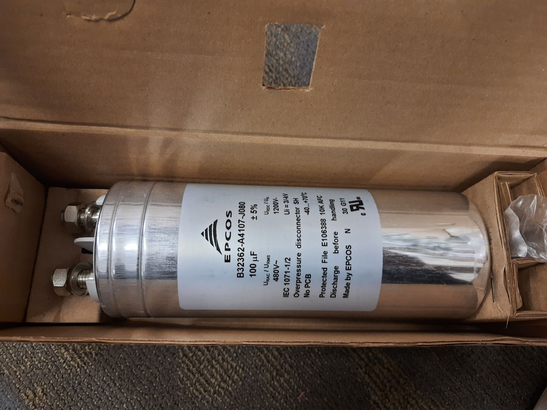 2 CASES OF APPROXIMATELY 6 EPCOS B32362-A4107-J080 CAPACITORS
