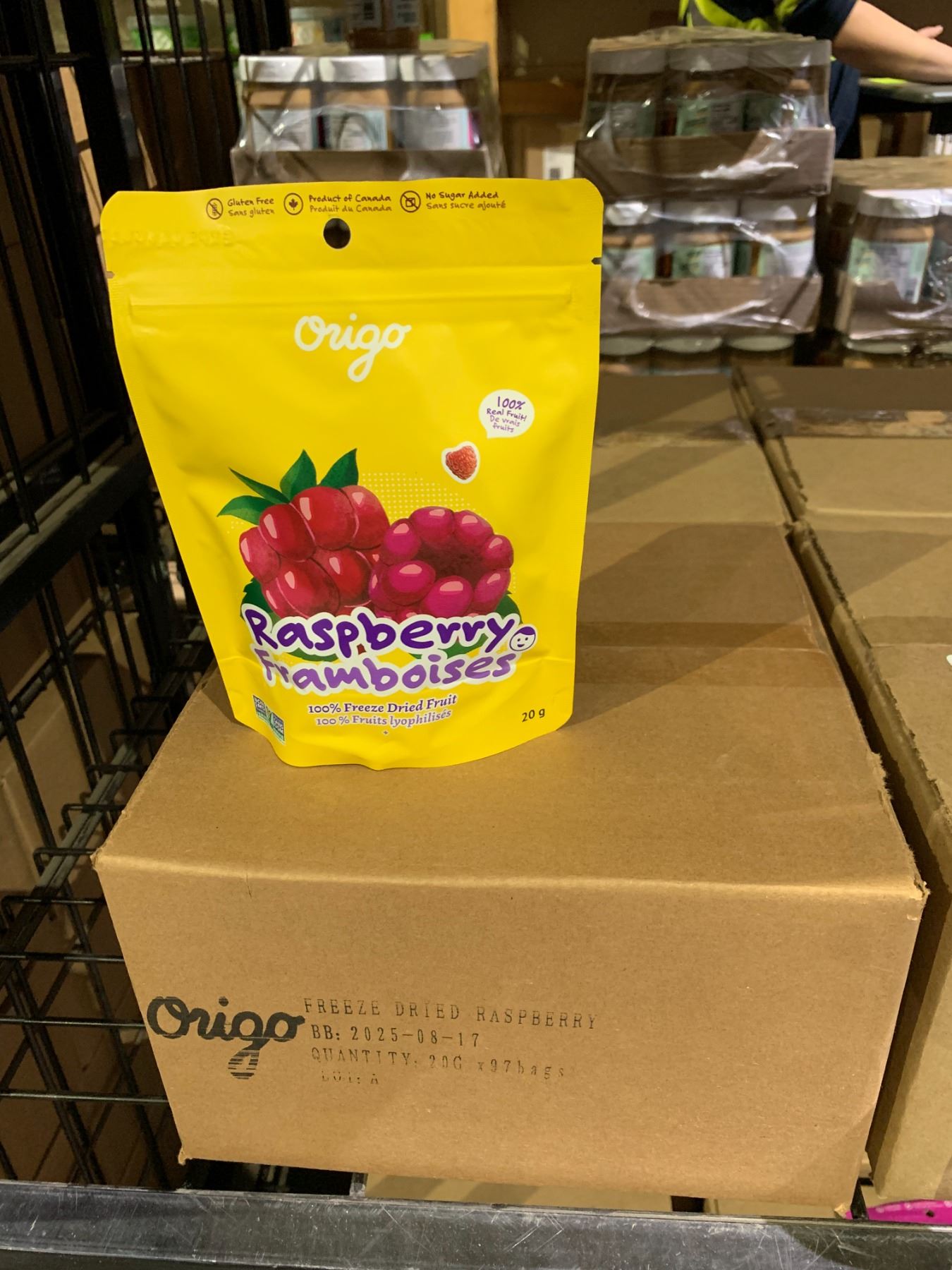 2 CASES OF ORIGO FREEZE DRIED RASPBERRIES (10 BAGS PER CASE)