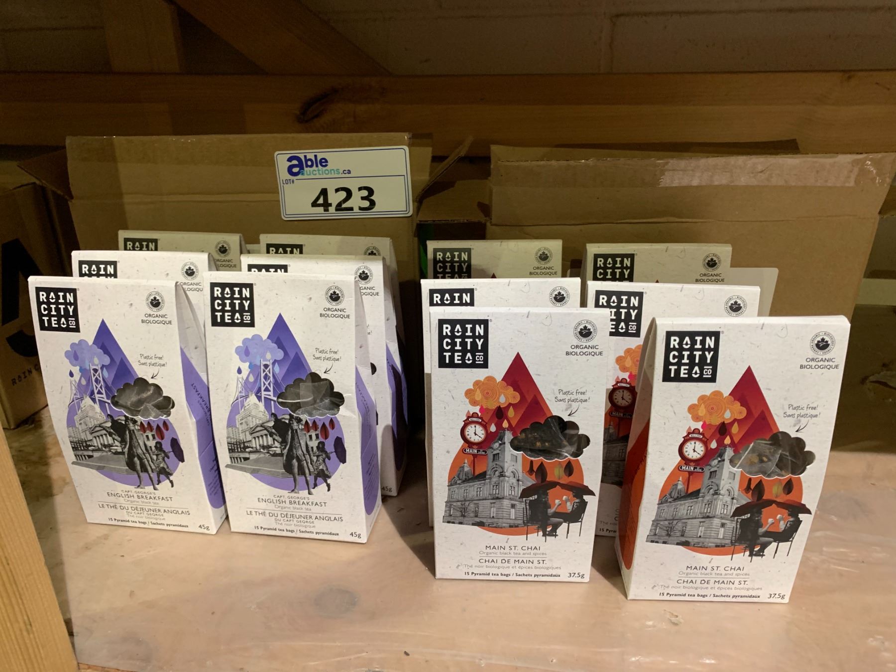 2 CASES OF RAIN CITY TEA 1 CASE ENGLISH BREAKFAST AND ONE CASE MAIN ST. CHAI (6 BOXES PER CASE)