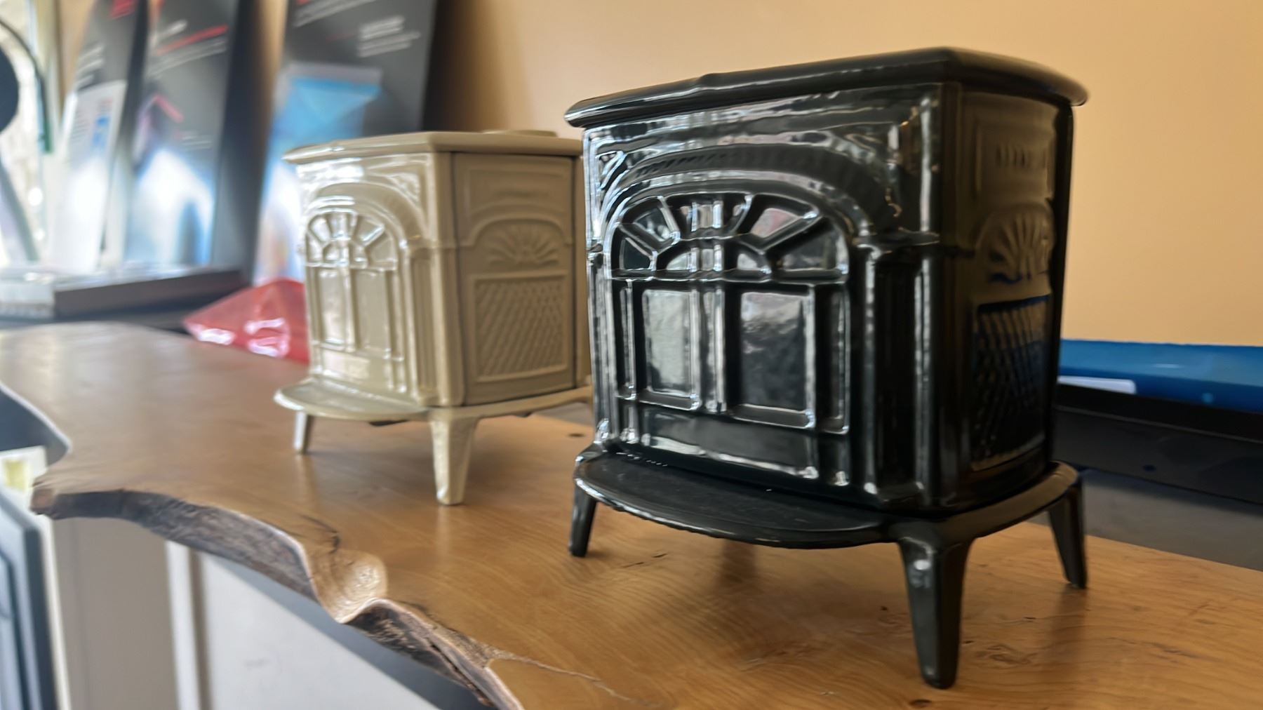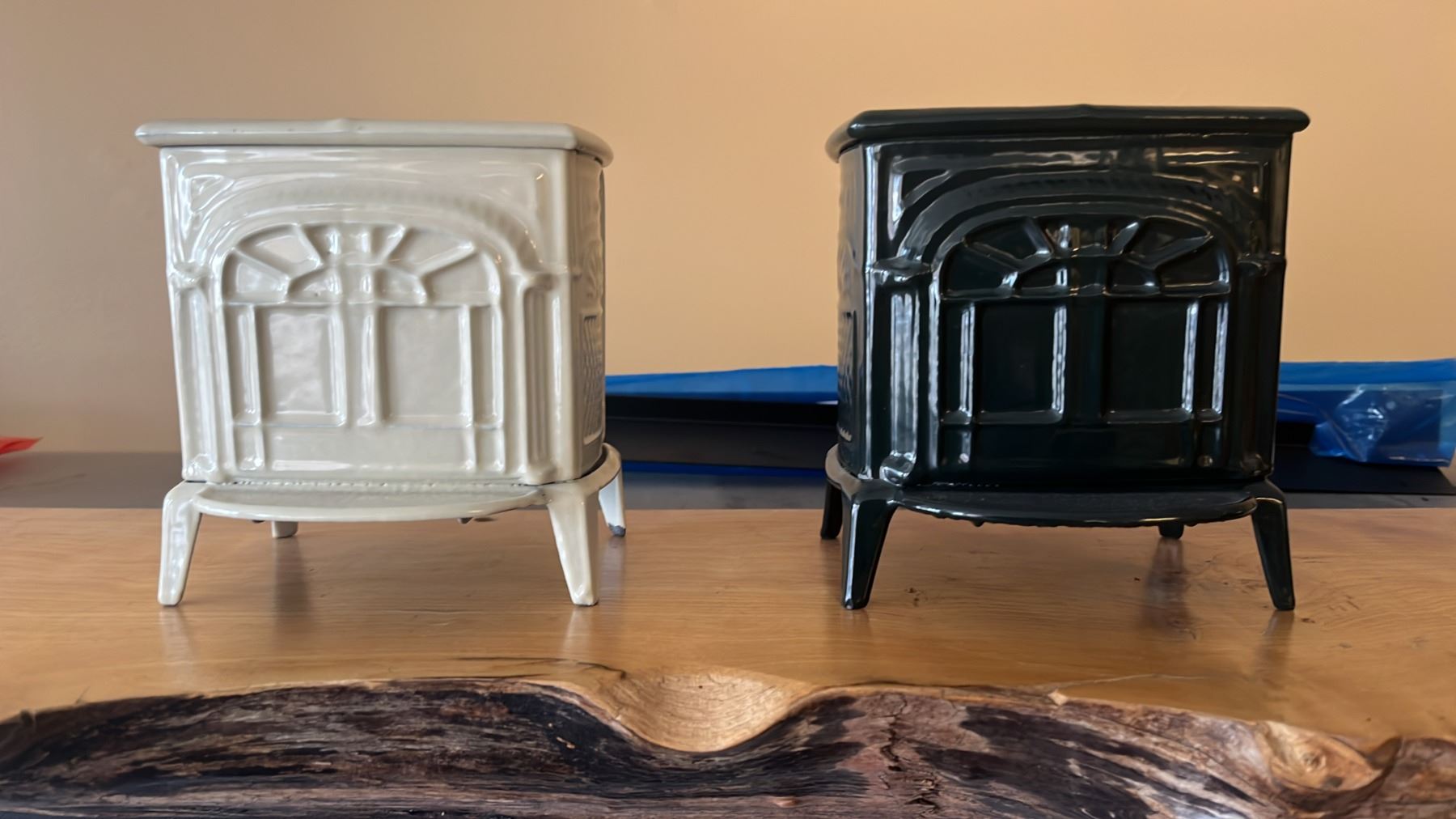 2 CAST IRON FIREPLACE PIGGY BANKS