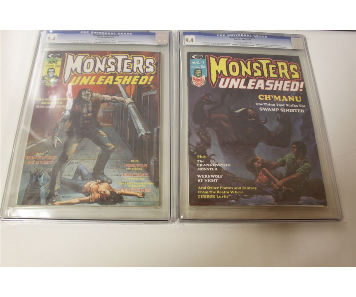 2 CGC MONSTERS UNLEASHED.  #6 (6/74) & #7 (8/74) BOTH COPIES ARE CGC 9.4 (NM) & HAVE OFF-WHITE TO WHITE PAGES.  #7 IS THE *2ND HIGHEST GRADED COPY ON THE PLANET*