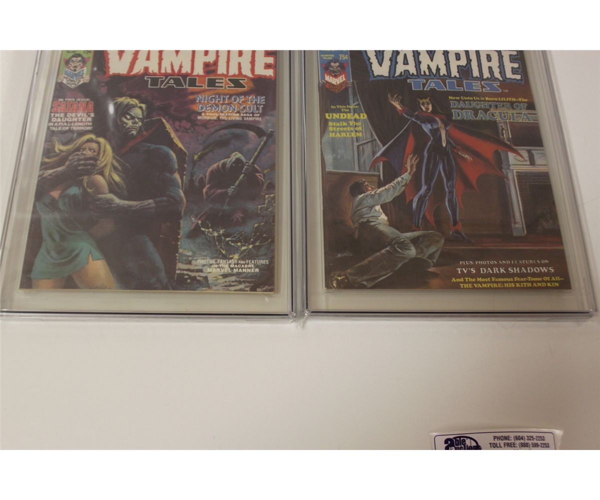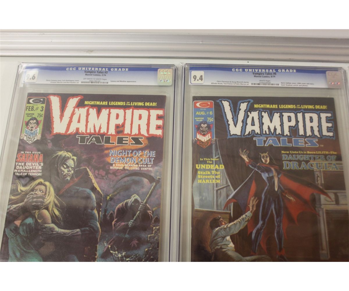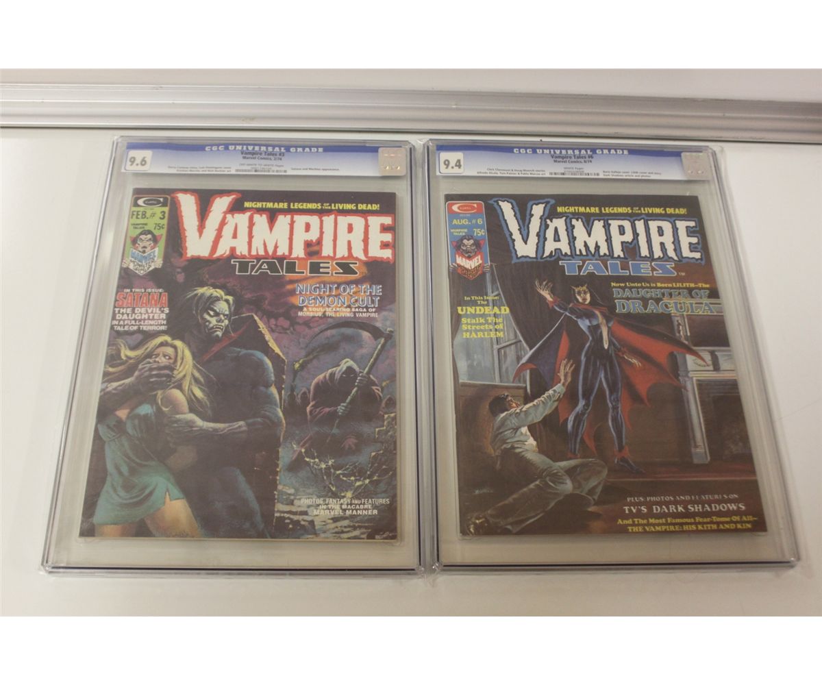2 CGC VAMPIRE TALES #3 & 6 - CGC 9.6, 9.4. #3 CGC 9.6 (MN+) OFF-WHITE TO WHITE PAGES (2/74), #6 CGC 9.4 (NM) WHITE PAGES (8/74) *BOTH COPIES ARE EACH THE 2ND HIGHEST GRADED ON THE PLANET*. THIS EXACT COPY OF #3 SOLD FOR $150 IN MAY, 2005, #6 CGC 9.4 SOLD FOR $183 ALSO IN MAY, 2005. SALES RECORDED ON THE GPA.
