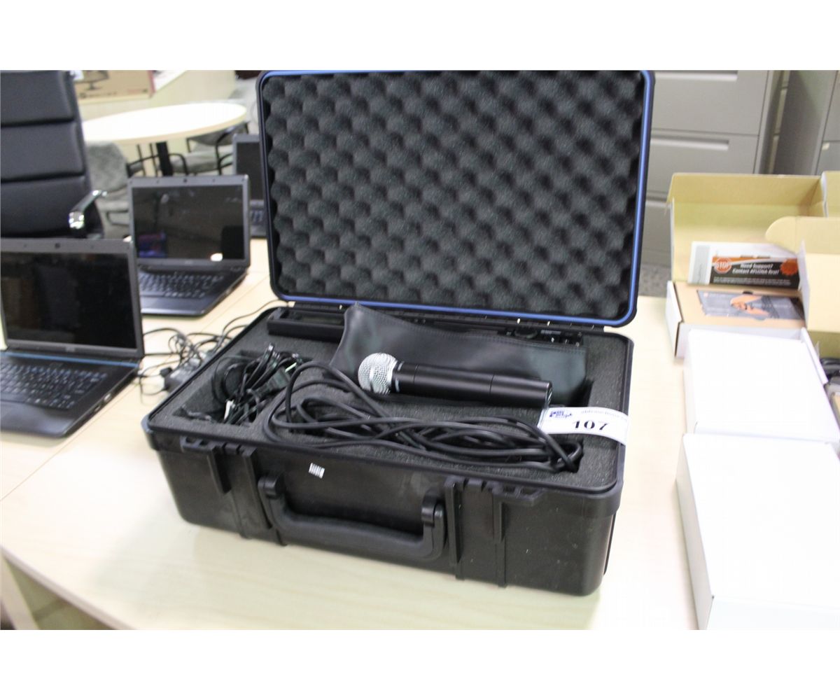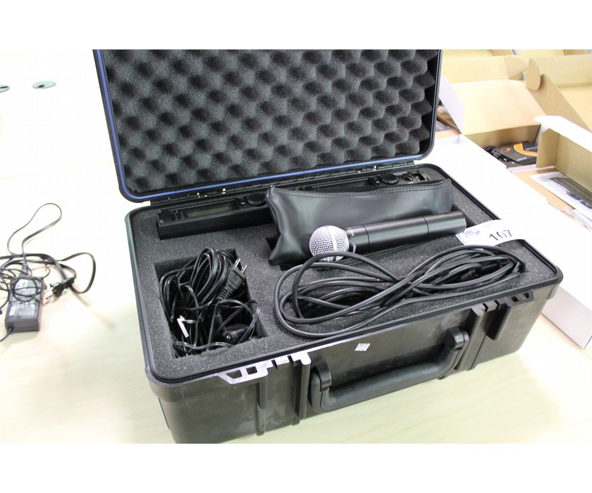 2 CHANNEL, 2 MIC SHURE ELXP4 WIRELESS MICROPHONE TRANSCEIVER W/ MICS AND CASE