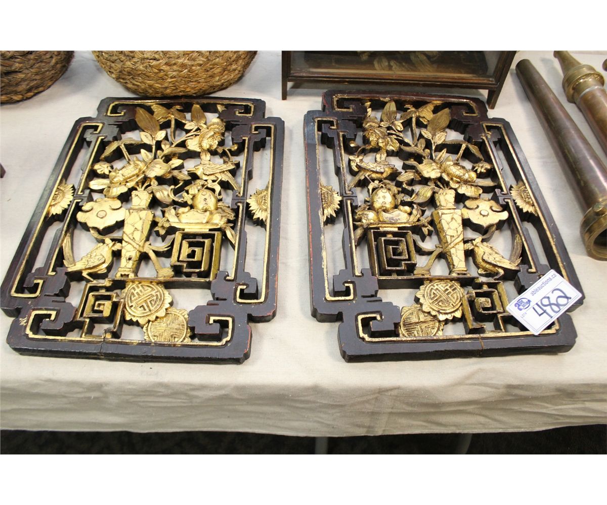 2 CHINESE CARVED WALL HANGINGS