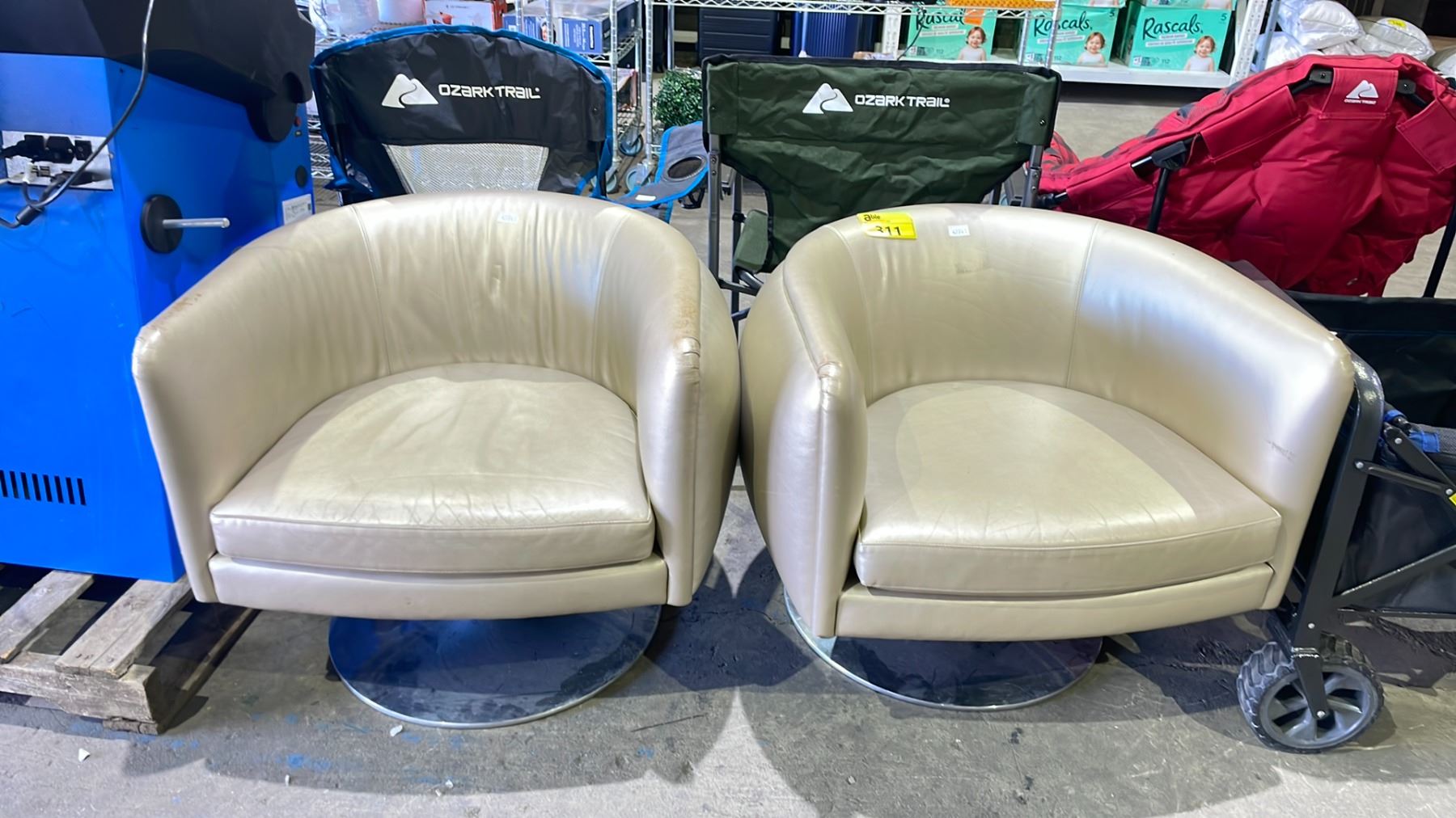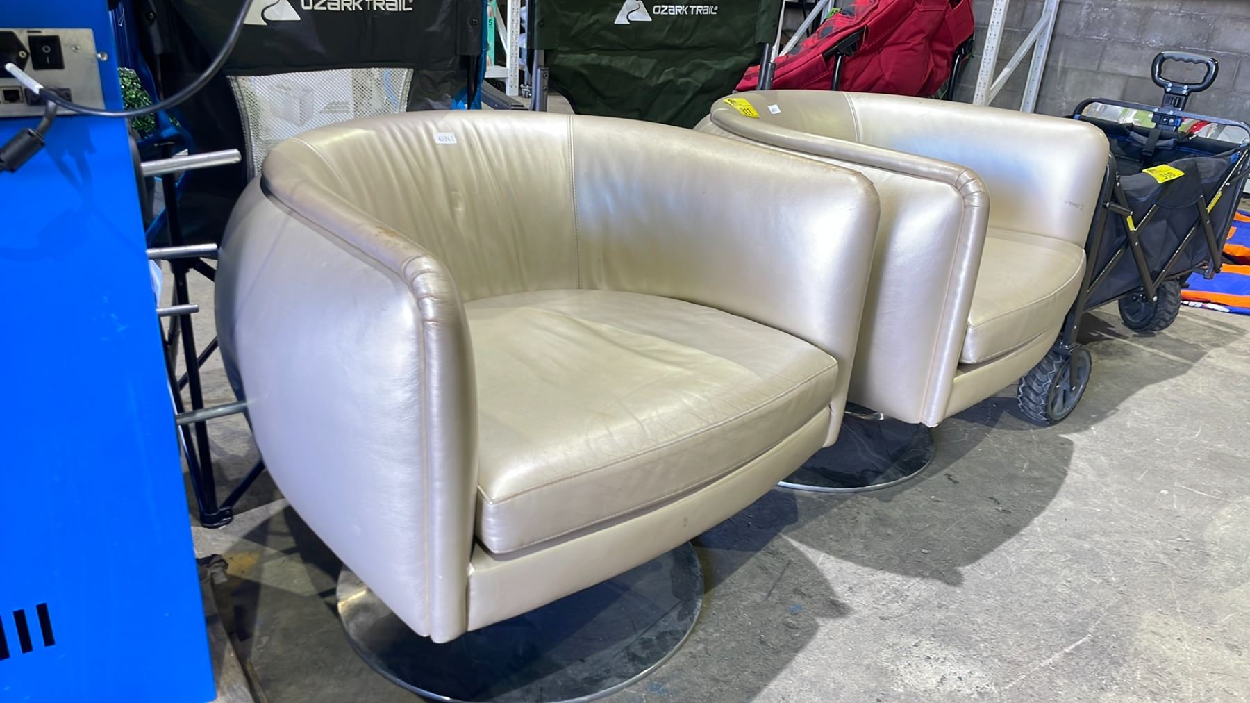 2 CHROME BASE SWIVEL PADDED LOUNGE CHAIRS