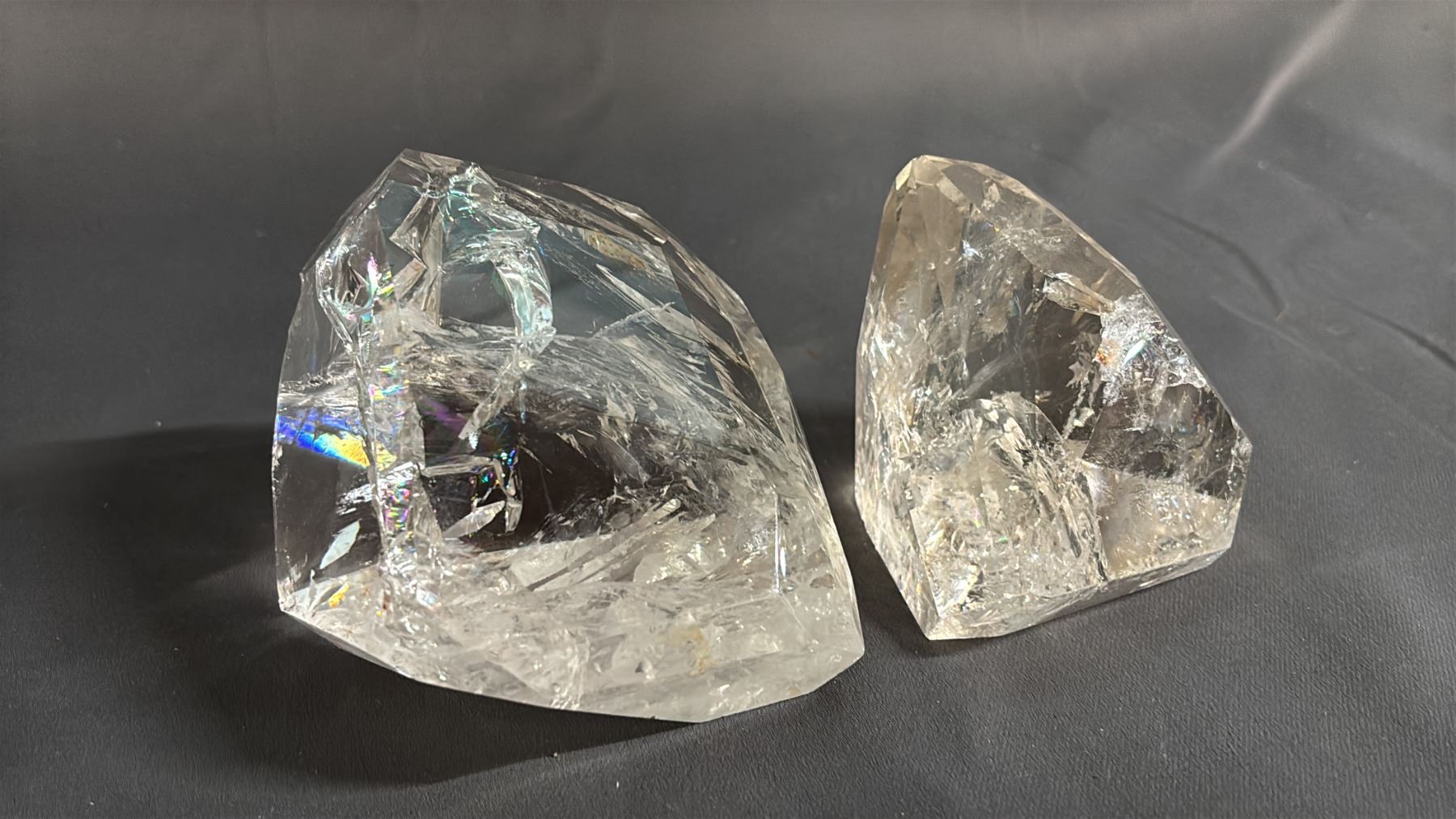 (2) CLEAR QUARTZ CRYSTALS: LARGER IS APPROX. 4"W X 2"T
