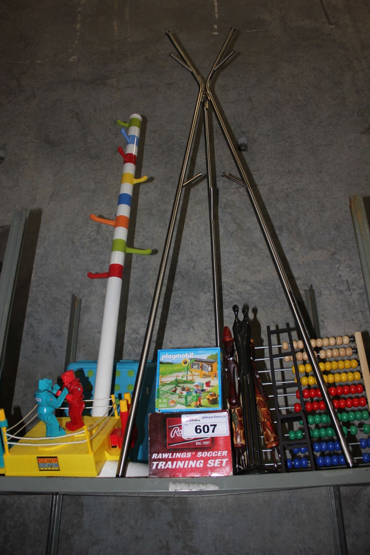 2 COAT HOLDER STANDS, SOCK N BOP EM REPRODUCTION, AND MORE
