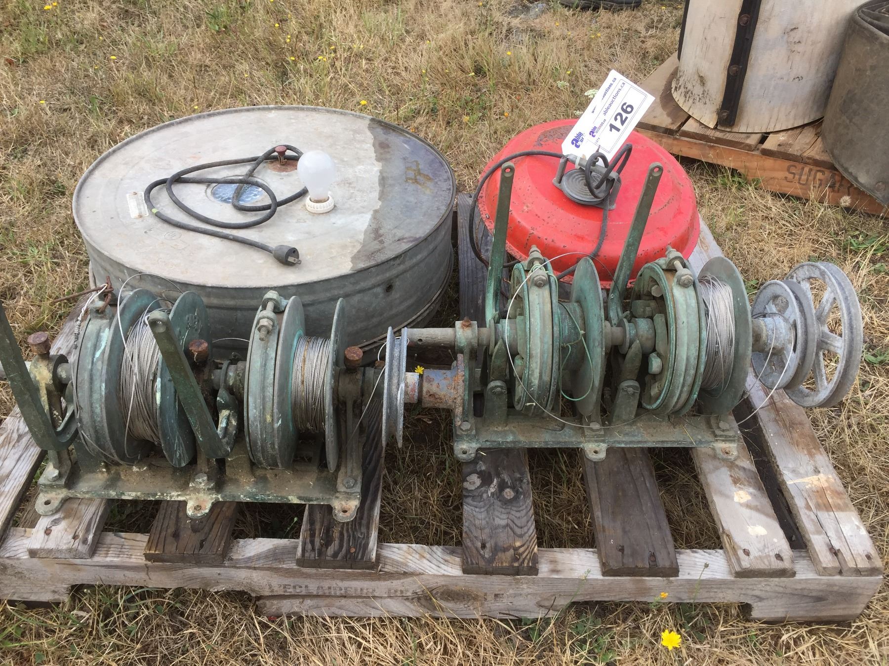 2 COMMERCIAL FISHING GURNEYS' WITH CABLE LINE, INCUBATOR & HEAT LAMP