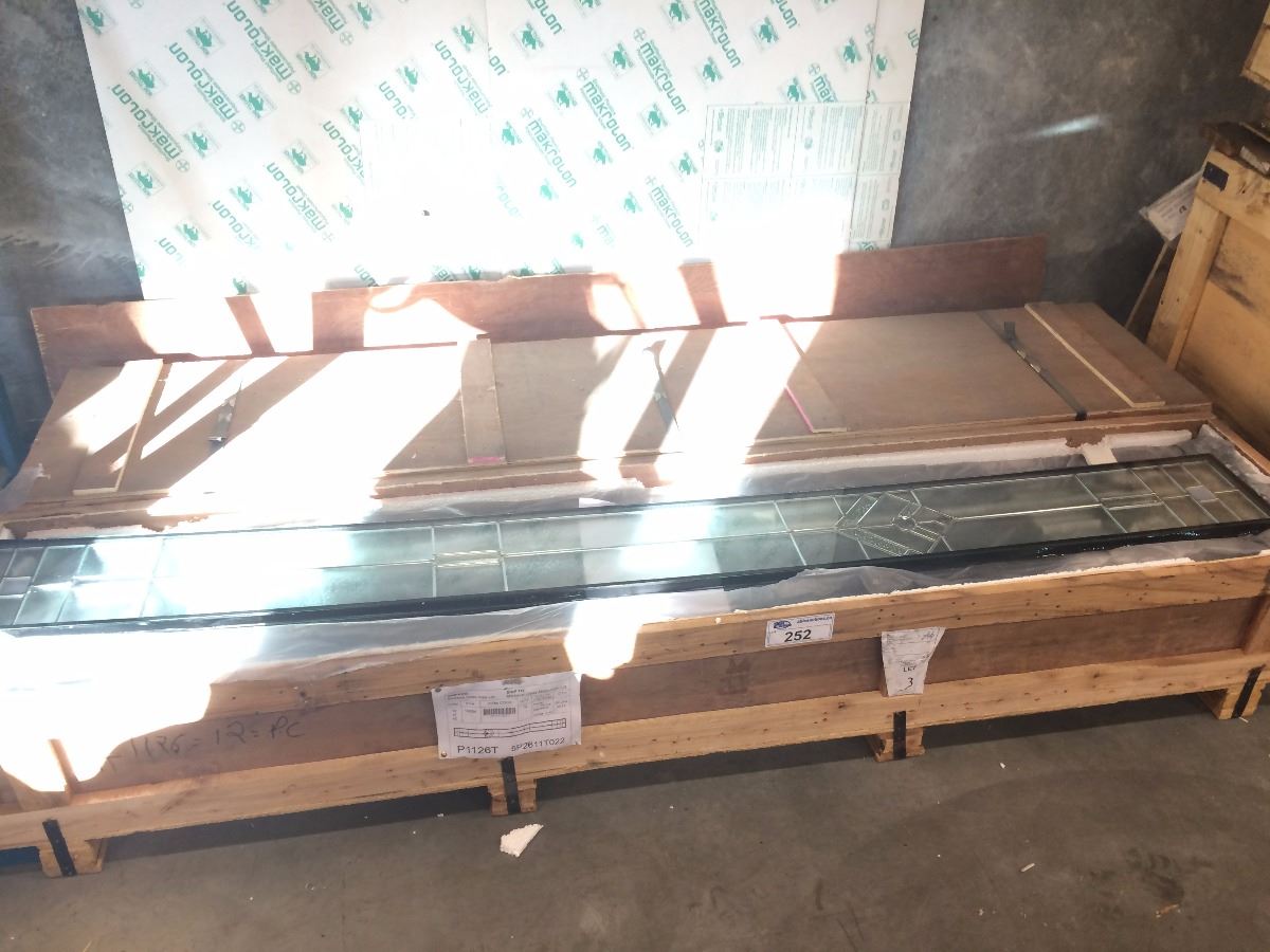 2 CRATES OF DECORATIVE INLAY WINDOWS WITH GLASS
