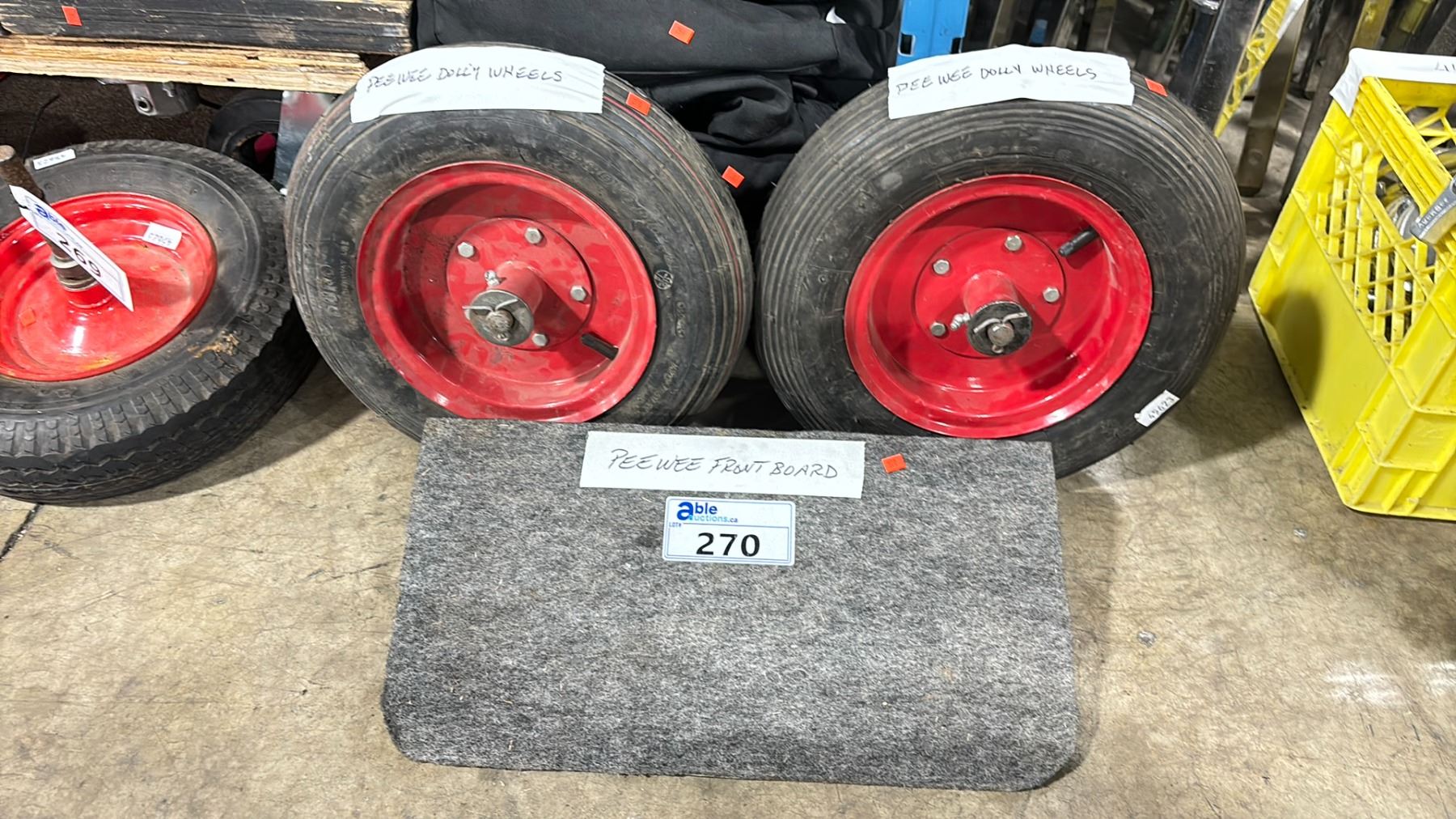 2 CUSTOM PRODUCTION PNEUMATIC PEE WEE DOLLY WHEELS, FRONT BOARD, DROP LEGS & TUBE HEATERS