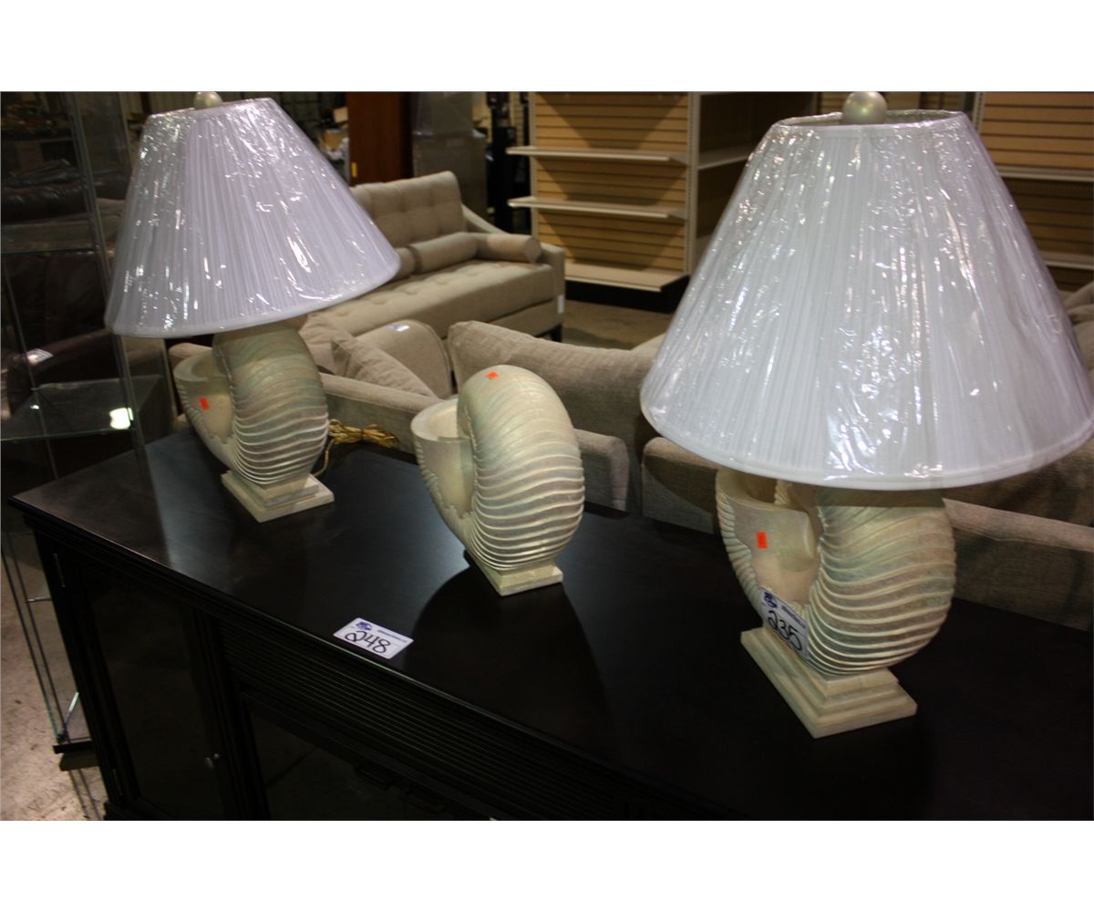2 DESIGNER SHELL LAMPS AND STATUE