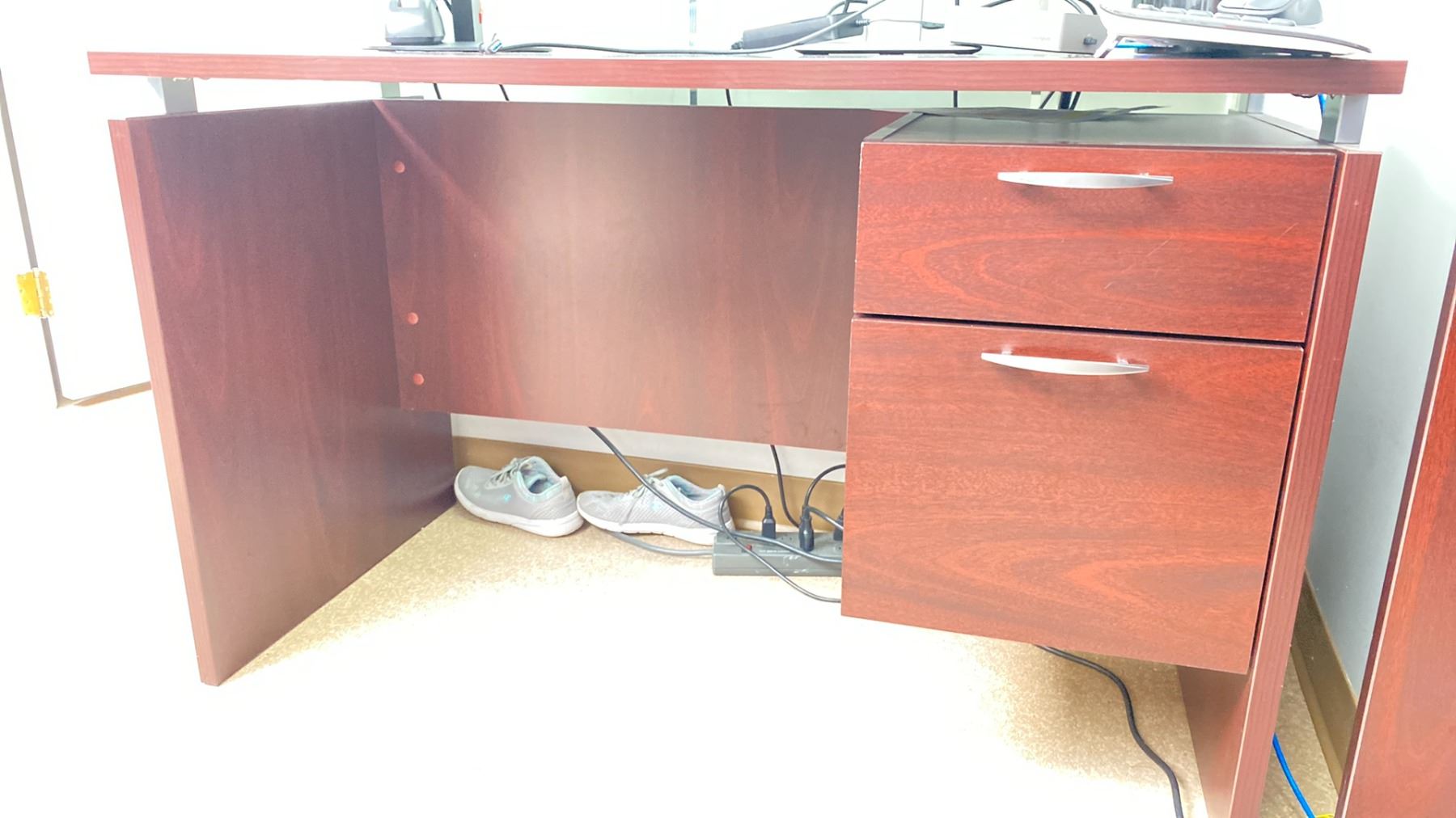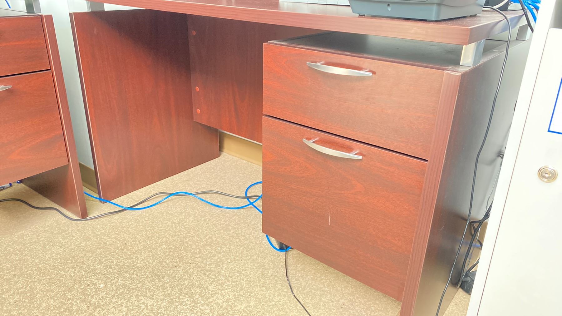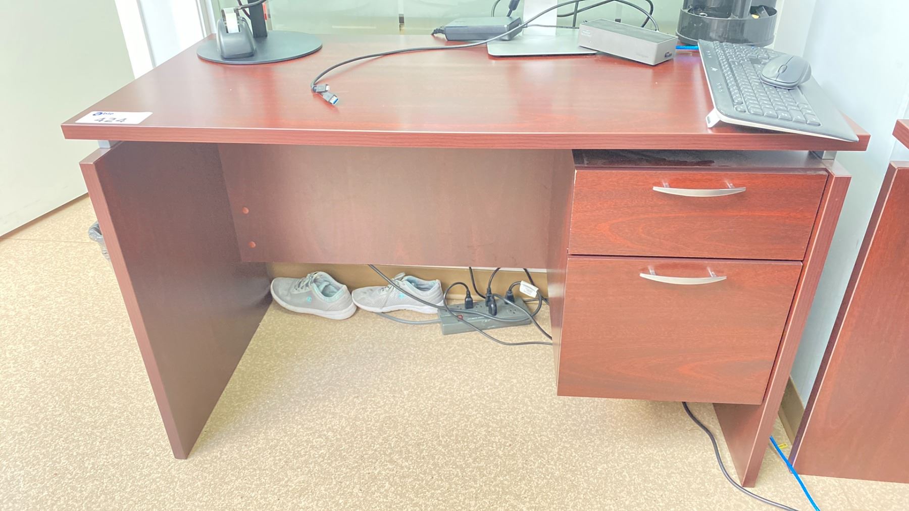 2 DESKS BOTH WITH 2 DRAWERS APPROX 4' X 2' EACH (CONTENTS NOT INCLUDED)
