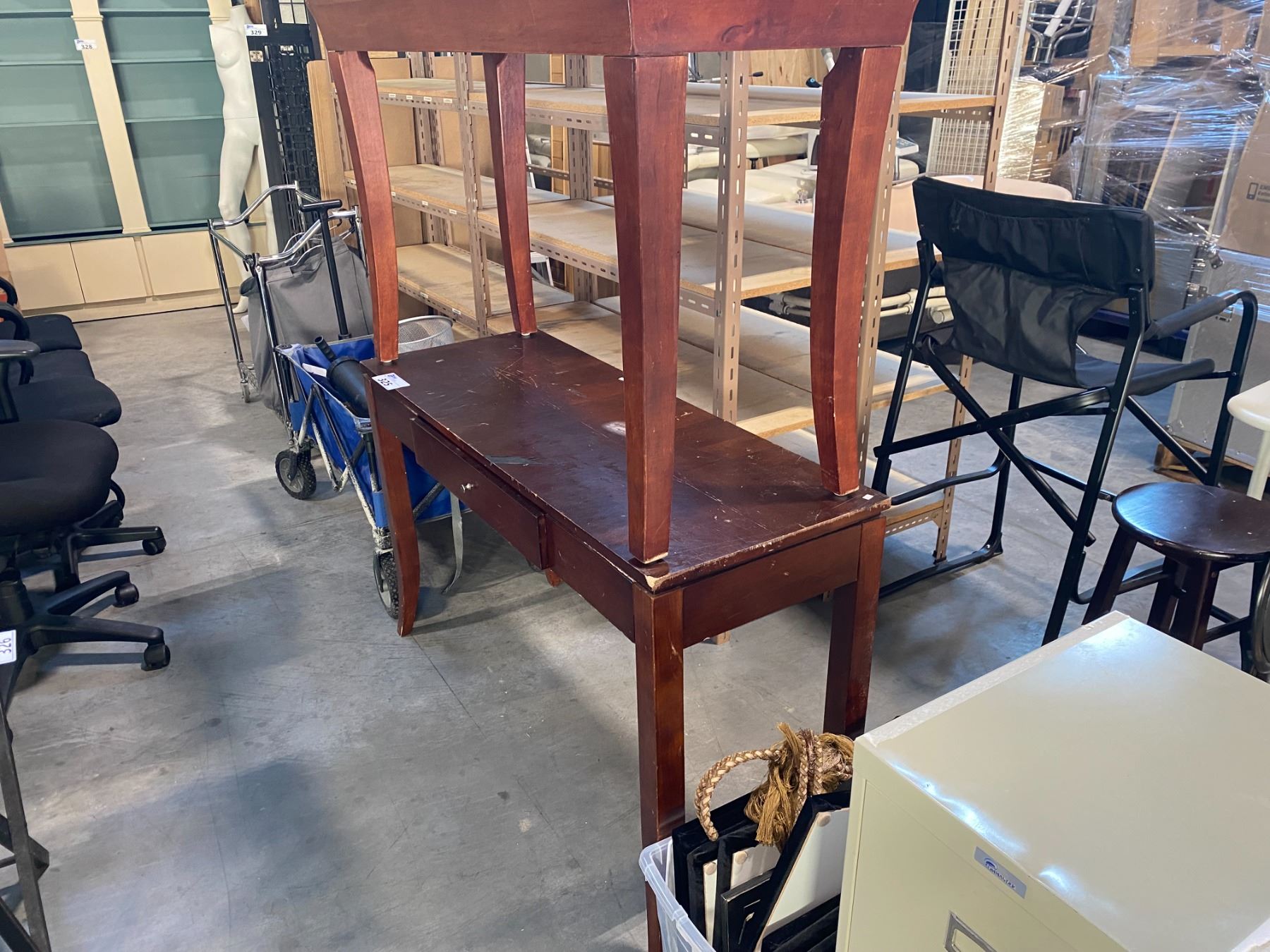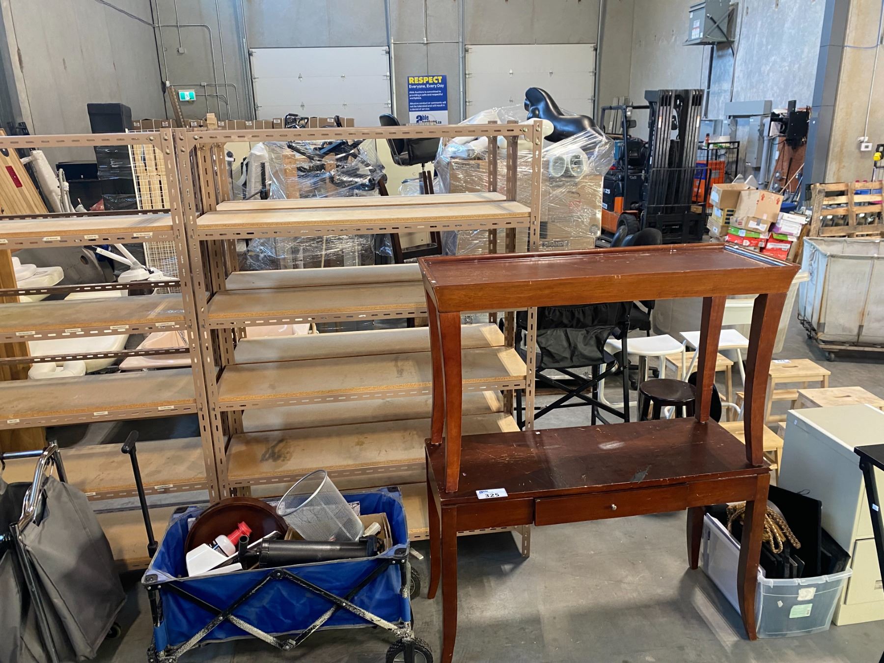 2 DESKS, FILE CABINET AND DISPLAY FRAMED POSTERS, MOBILE CARTS AND CONTENTS